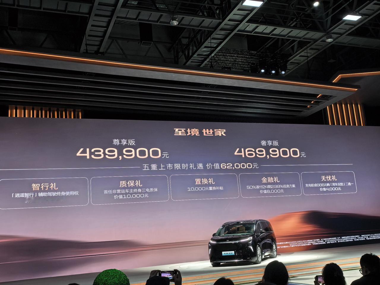 上汽通用汽车别克品牌旗下全新高端新能源子品牌“至境”的首款旗舰MPV——别克至境世家正式上市。新车共推出2款配置,尊享版指导价为43.99万元,奢享版指导价为46.99万元。新车核心亮点如下: 1、核心定位:定位“别墅级新能源旗舰MPV”,基于全新“逍遥”超级融合架构打造,旨在满足高净值家庭的全场景出行需求。 2、健康与空间:行业首创 “五恒”大健康座舱(恒温、恒湿、恒氧、恒洁、恒静),配备松下nanoe™X净化技术及多项国际健康认证。拥有5260mm车长和3160mm轴距,二排搭载多姿态零重力座椅,可联动副驾变身为云感贵妃榻。 3、动力与续航:搭载“真龙”插混Pro双电机四驱系统,系统综合功率462kW,CLTC综合续航1320公里,纯电续航224公里,并支持3C快充。 4、底盘与智能:配备行业首创的云台式超低礼宾空气悬架,可降低车身60mm,方便上下车。搭载“逍遥智行”高阶辅助驾驶系统,支持城市NOA功能。【来自懂车帝车友圈】