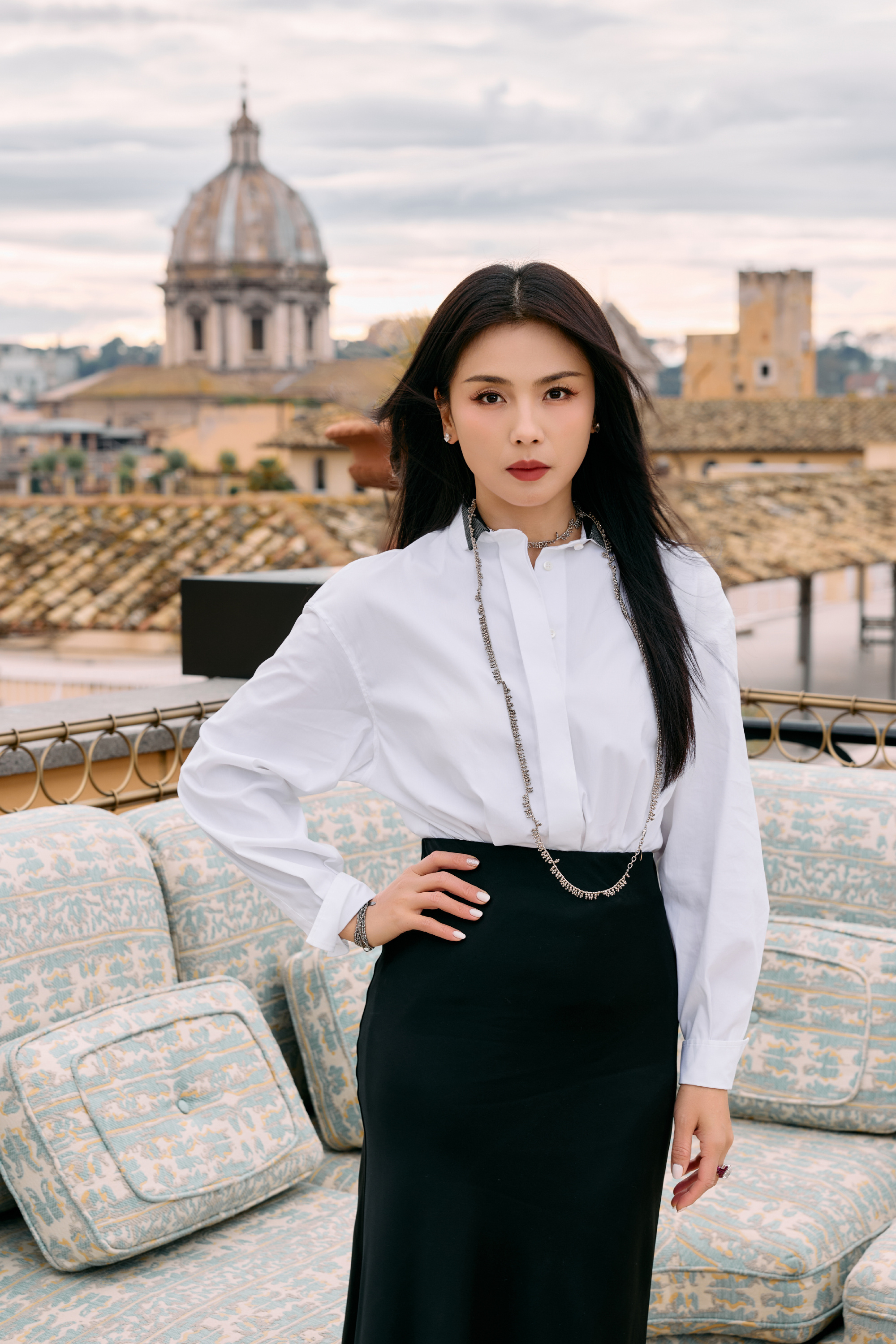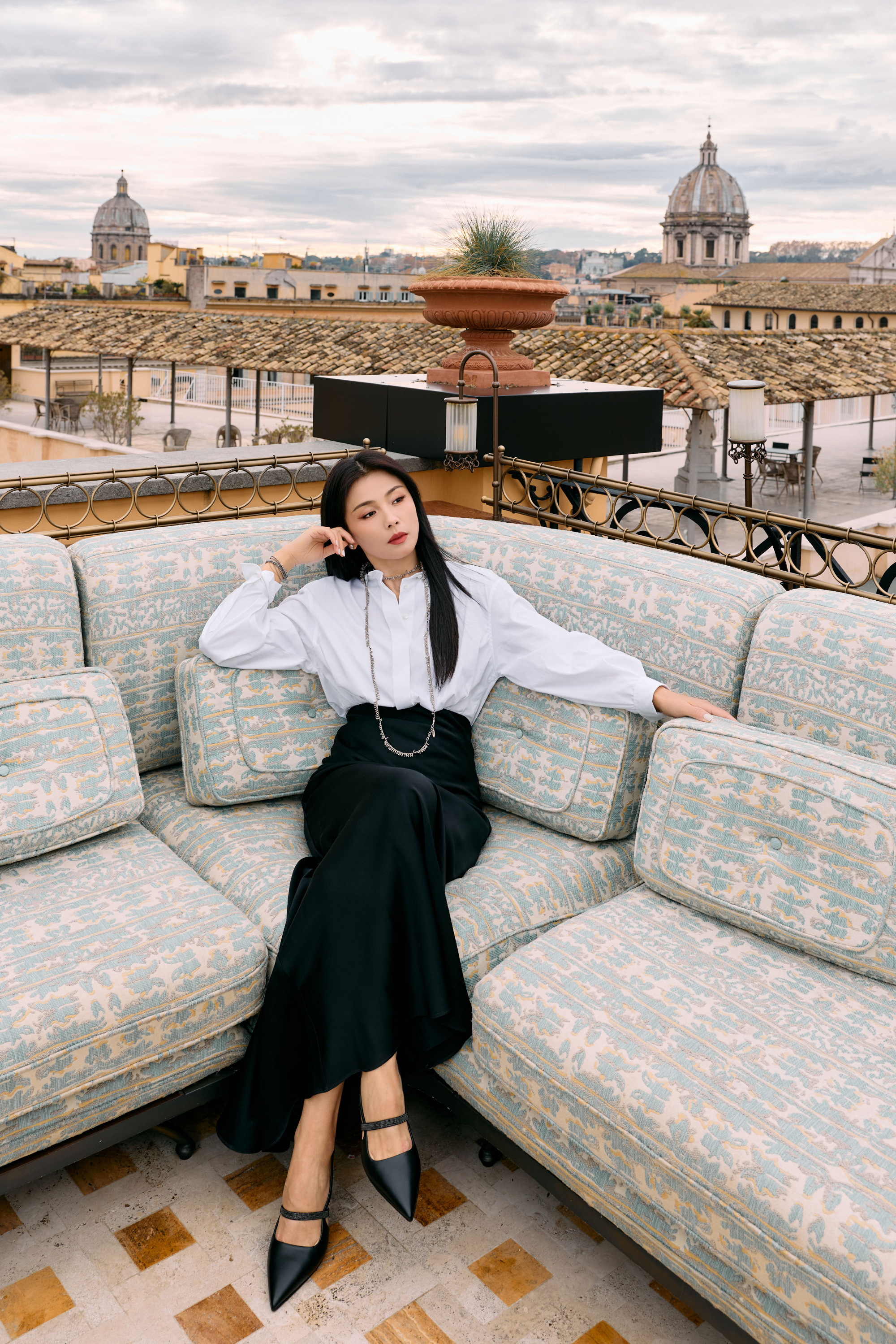 刘涛一字肩设计大秀雪肤锁骨,长裙高开衩秀出逆天美腿