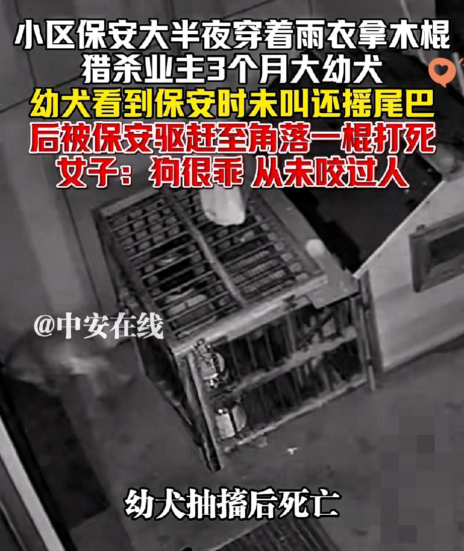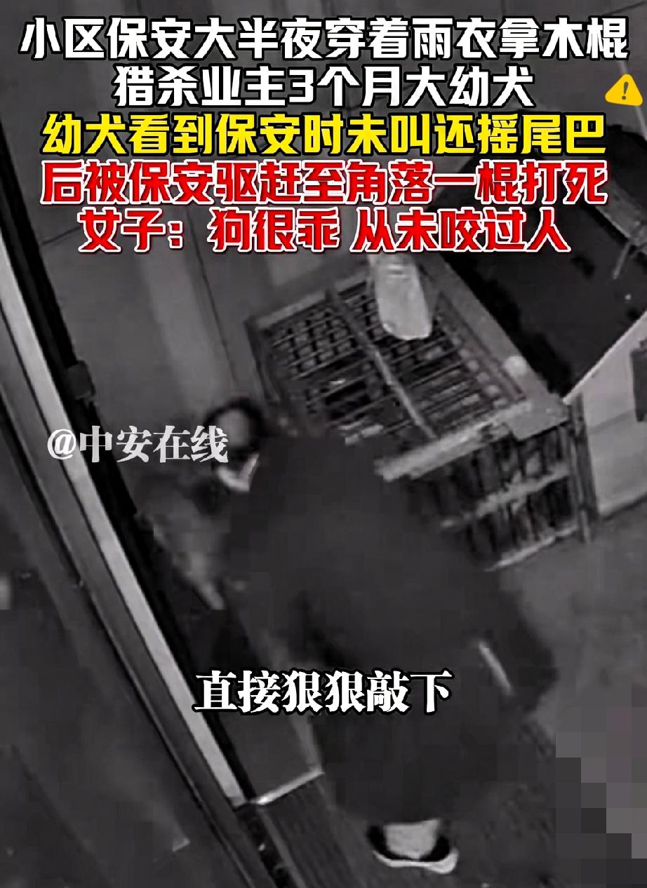 气到发抖! 杭州这保安一棍子打死的不只是小狗,更是社区该有的温度和底线! 凌晨的雨夜里,3个月大的小白狗摇着尾巴蹭保安裤腿,没叫没闹,却被对方抄起木棍逼到墙角打死,事后还偷偷藏尸绿化带。 狗主人没拴绳确实违规,该罚,但这绝不是剥夺小生命的理由! 保安口中的“规定”拿不出任何依据,更像积压的怨气在泄愤。 社区治理哪能靠“一棍子打死”? 深圳早就有先例,遇到违规犬只联动机构收治、先劝导再整改,刚柔并济才管用。 保安缺专业培训、物业权责模糊、主人心存侥幸,最后却让最无辜的生命买单。 真正的社区安全,是对生命的敬畏,是矛盾的合理化解,而非极端暴力。 你觉得该如何平衡文明养犬和社区治理?