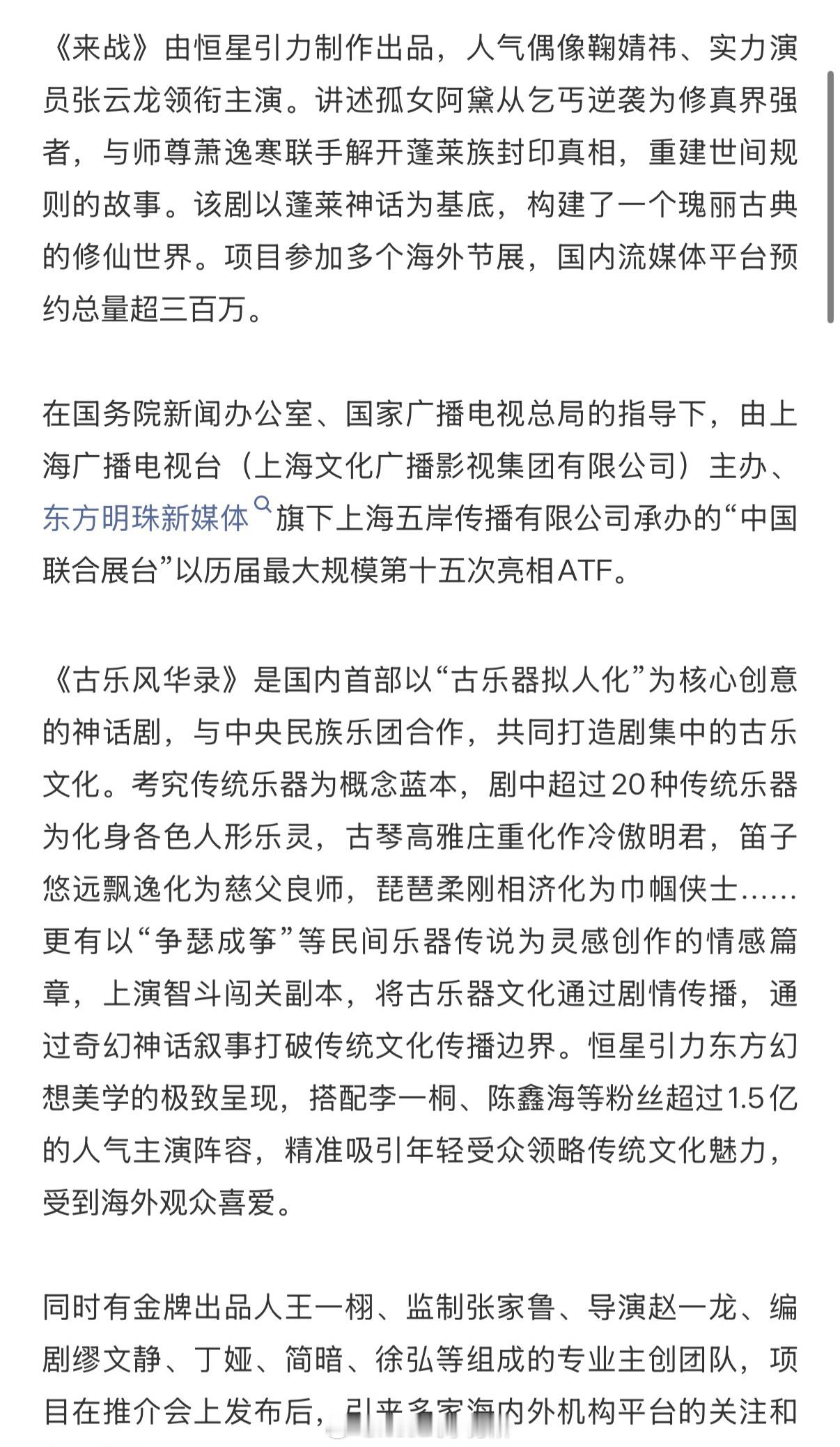 恒星引力携鞠婧祎《来战》 李一桐《古乐风华录》等多部作品亮相新加坡ATF(亚洲规模最大的娱乐内容市场——亚洲电视论坛与市场)