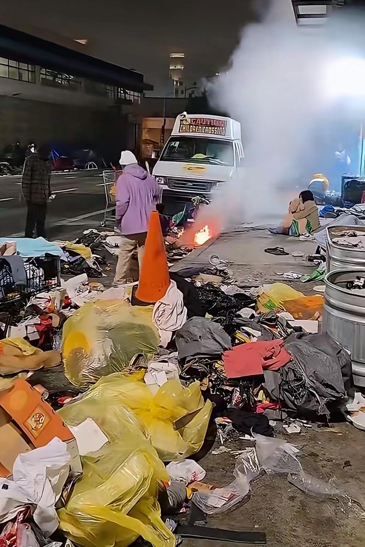不要总是说美国晚上路上没人了,看看洛杉矶的晚上有多热闹,人们在路边燃起了篝火,冷了还可以在路边捡几件衣服穿,实在太自由了