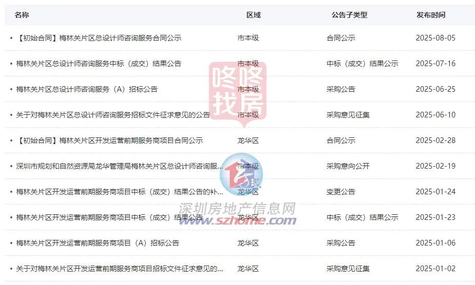 据梅林关片区相关招标文件背景显示,梅林关片区位于深圳市中部,是龙华区南部区域门户,东邻银湖山,西接西丽科教城,南隔大脑壳山、银湖山行与福田中心区相接,北接深圳北站、华南物流园、坂雪岗科技城。