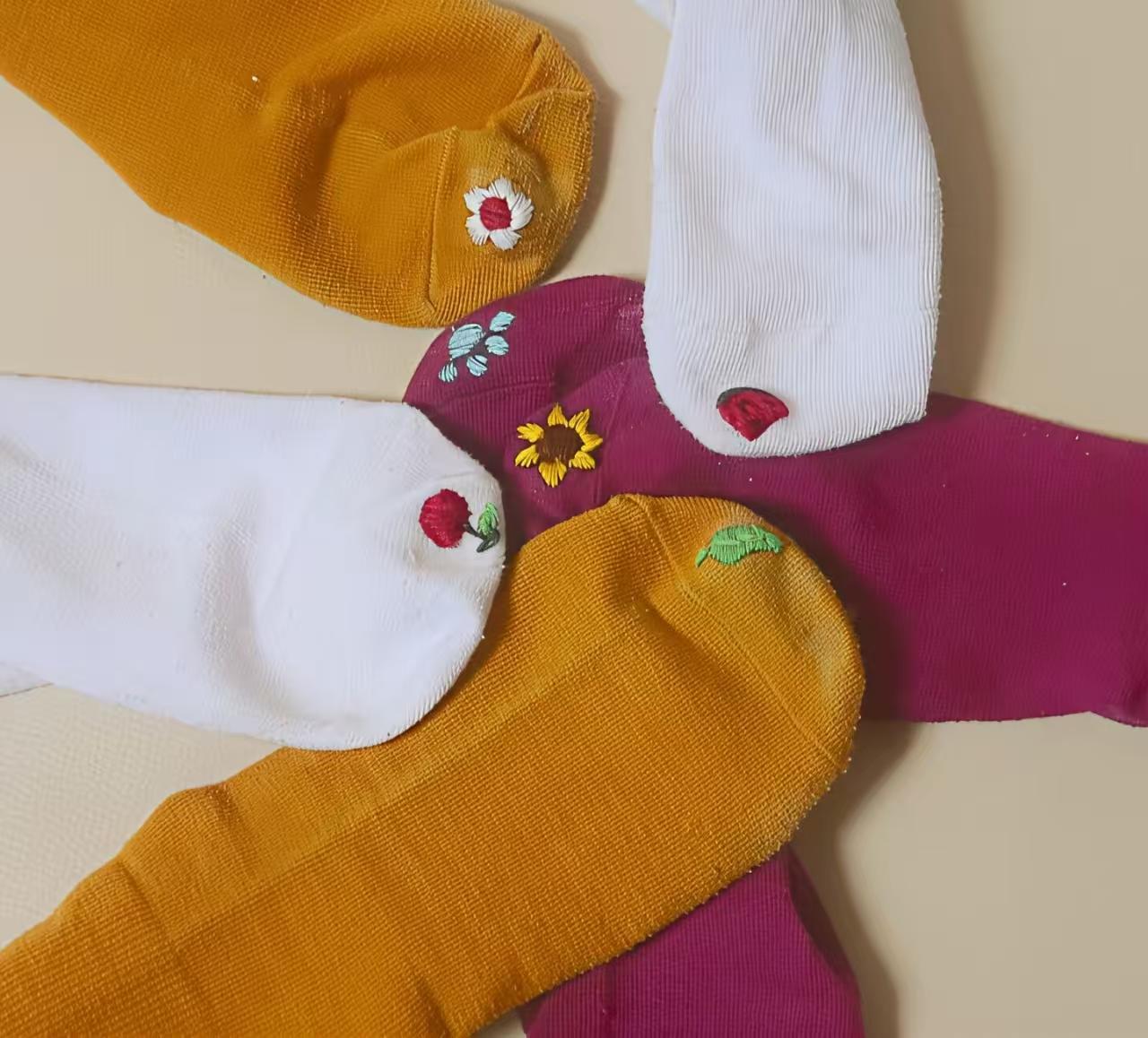 婆婆给我缝补的袜子。我也是大脚趾最长,袜子穿一次顶一个洞,其他位置都新的。丢了可惜,穿着不舒服。 我袜子要是穿破了我会很开心,这样我就可以毫无心理压力把它扔掉,可惜现在的衣服质地太结实了! 婆婆自己的凑合缝了,给你缝的真上心了,图案好看,妙笔生花的感觉。 我也会补袜子,但是不能拿出来晒,太丑了,就是不漏脚趾头了,我以为只有我一个补袜子穿呢。 不一定得绣成花叶的,你用小号针线用细线缝上也不明显还不硌人。 手艺是不错,但是补袜子不至于吧,补上的毕竟会磕脚,可以衣服裤子一类的。 经常剪脚指甲应该不容易破吧?穿的时候脚尖要稍微拉松一点点。 你们是不是大脚趾最长,我就是,我的袜子也从来都是破在这个位置,纯棉含量越高的袜子越容易破。