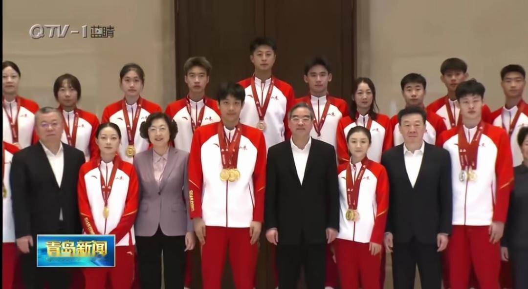 12月5日,陈梦回青岛参加座谈会了,受到当地高规格接待,陈梦坐在重要位置,在发言环境第一个发言。 在这种比较庄严的场合,陈梦穿着红色运动服,脖子上挂着奖牌,特别荣耀,青岛是陈梦的家乡,陈梦回到家乡,接受表彰,那是一种特别的荣誉。 在合影环节,陈梦站在了第一排中间的位置,说明家乡对运动员们特别重视。