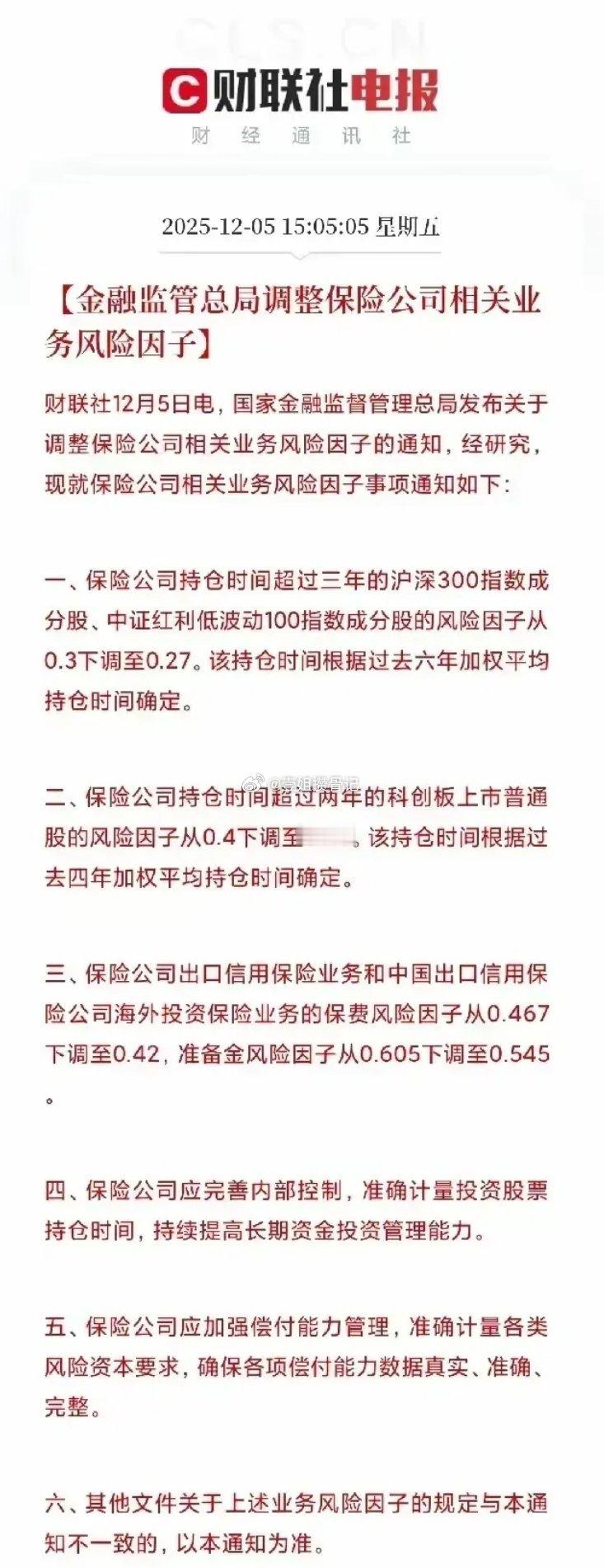 今天,2025年12月5日,股市收盘后,突发重大利好,股民们欢欣鼓舞、喜气洋洋,部分股民已经开始提前幻想下周一的收益了。 客观地说,该消息确实是长线利好,未来有利于吸引长线资金入市。 但是,短线却未必是利好。 因为,保险资金一定是做价值投资的,不是来解放目前被套的股民的。 做价值投资,当然希望买入价格越低越好;因此,在试探性买入部分筹码后,一定会反手做空,向下砸盘,然后在相对低位再吸货,以尽可能地降低买入成本。