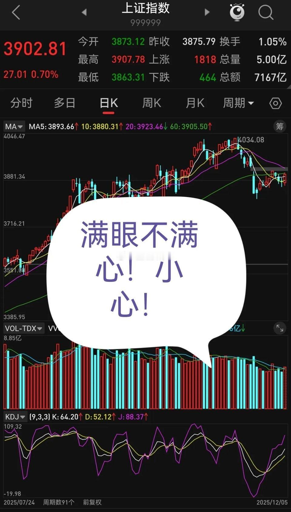大盘再次站上3900点。从缩量到放量,功劳最大的就是证券了,下午不知道啥原因,券商极速拉升,也带动了大盘的放量上涨。真不愧为旗手啊!总的来说基本符合预判。但是不要高兴太早,这里还是要说观点不变,下跌趋势还在发生中。退一万步讲,大金融搭台拉升能不能有持续性啊,下周一要扣底8000亿(上证指数)的量能,大金融还能继续发力吗?科技题材股能不能跟上啊?这里要打一个问号。操作还是谨慎些比较好!我说说下周的观点和方向,下周一的抛压很大,大盘能不能放量是关键。现在的三大指数,创业板指数,上证50指数都把上方的缺口补了。大概率大盘也会补上,但补上之后可不是要向上突破进攻啊,大盘还是在c浪回调趋势中,方向不变。3816点早晚要破,不破不立,这是必须的。12月下旬的事情很多,有利好有利空。我们观点是,大盘要想健康的走远走高,必须先下后上。盘面上结构告诉我,没有主线,科技股的估值修复不到位,光靠几个没有影响力的板块拉升,是没有持续性的,是没有大行情的。最后一句话,小心有黑天鹅事件发生!点到为止。