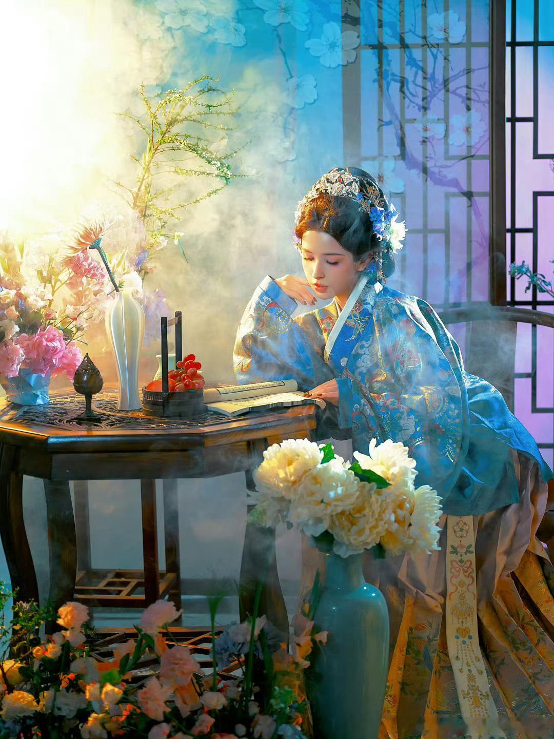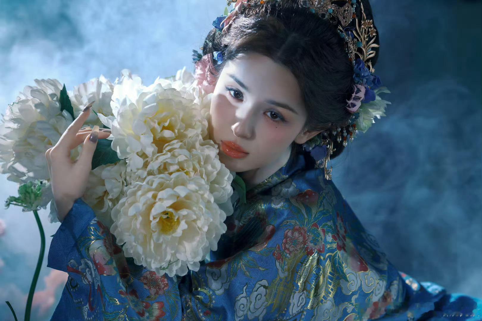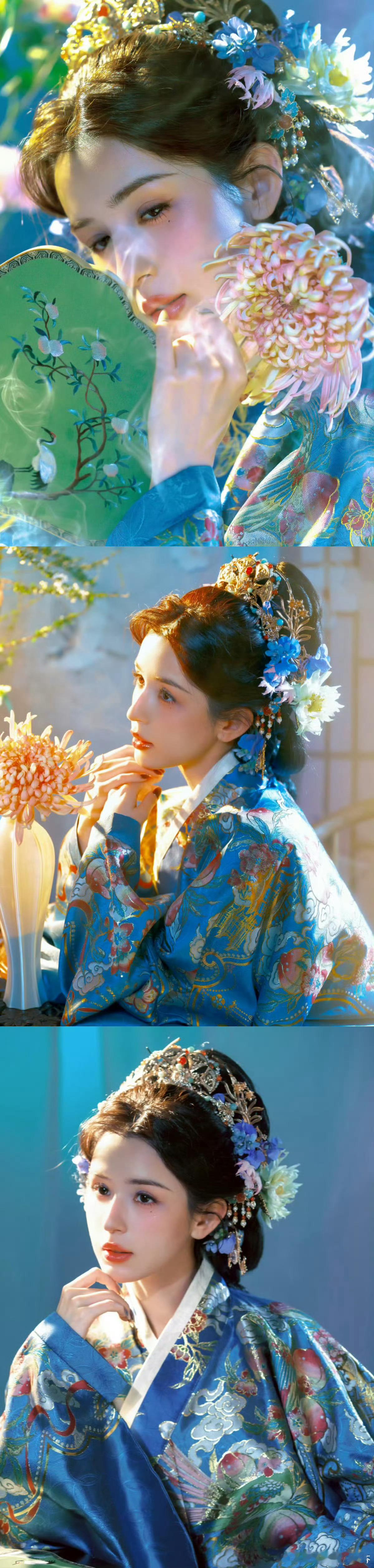 哈妮克孜美得像油画谁懂啊!哈妮克孜这组图也太美了吧古装造型一穿,鬓边碎发随风飘,手里还捧着娇艳花束,眉眼间的清冷又带点柔媚,真的像极了古典油画里走出来的仕女!这颜值简直是老天爷追着喂饭吃