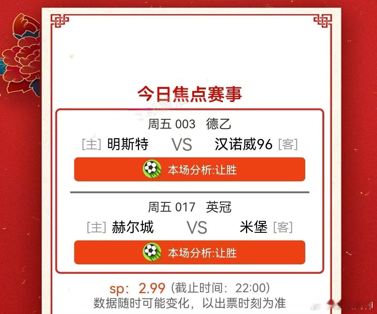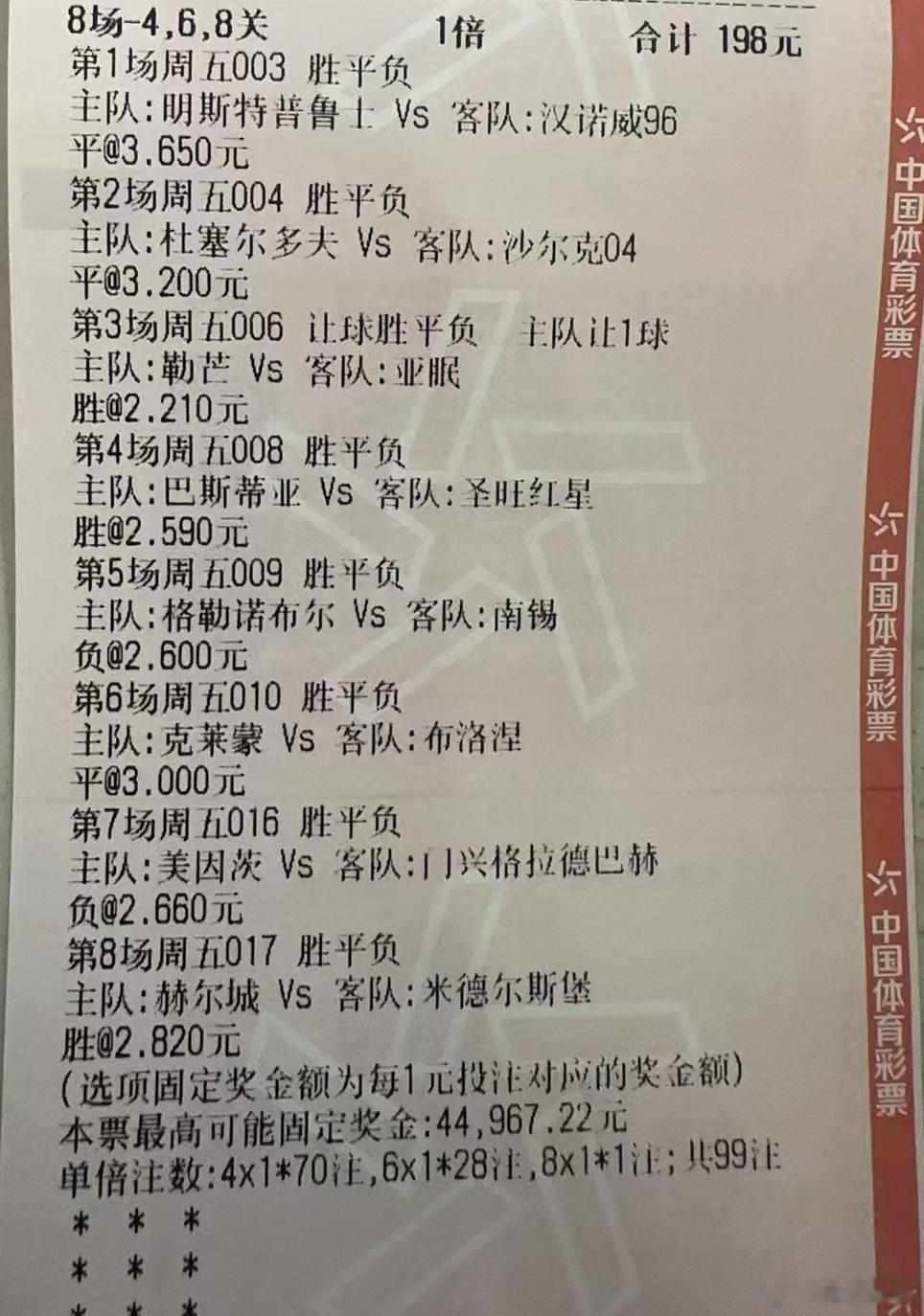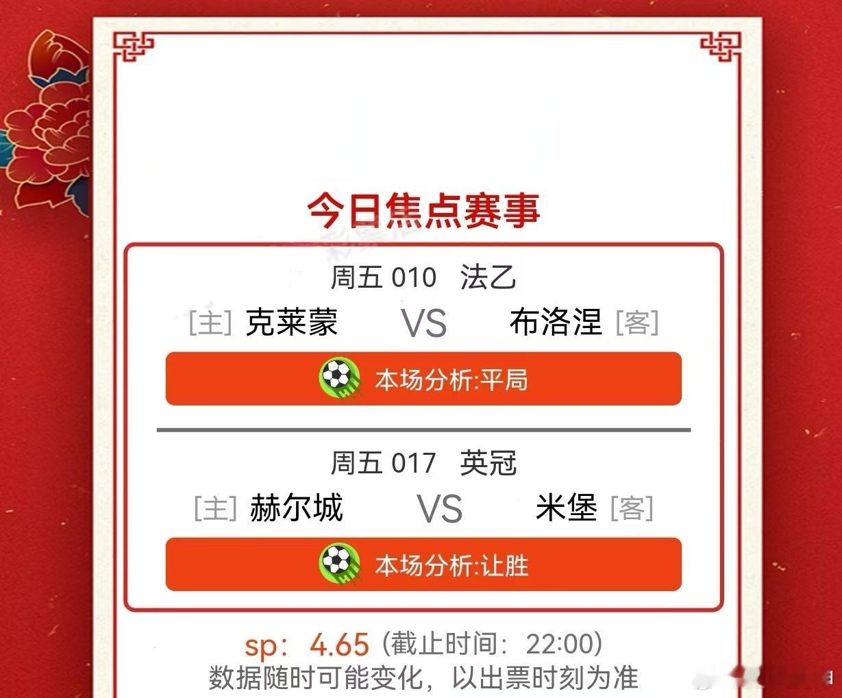 12月5日001 麦克阿瑟VS 墨尔本胜利002 珀斯光荣VS 西悉尼流浪者003 普鲁士明斯特 VS 汉诺威96004 杜塞尔多夫VS 沙尔克04005 布雷斯特VS 摩纳哥 006 勒芒VS 亚眠007 甘冈VS 阿讷西008 巴斯蒂亚 VS 圣旺红星009 格勒诺布尔VS 南锡010 克莱蒙特VS 保洛尼