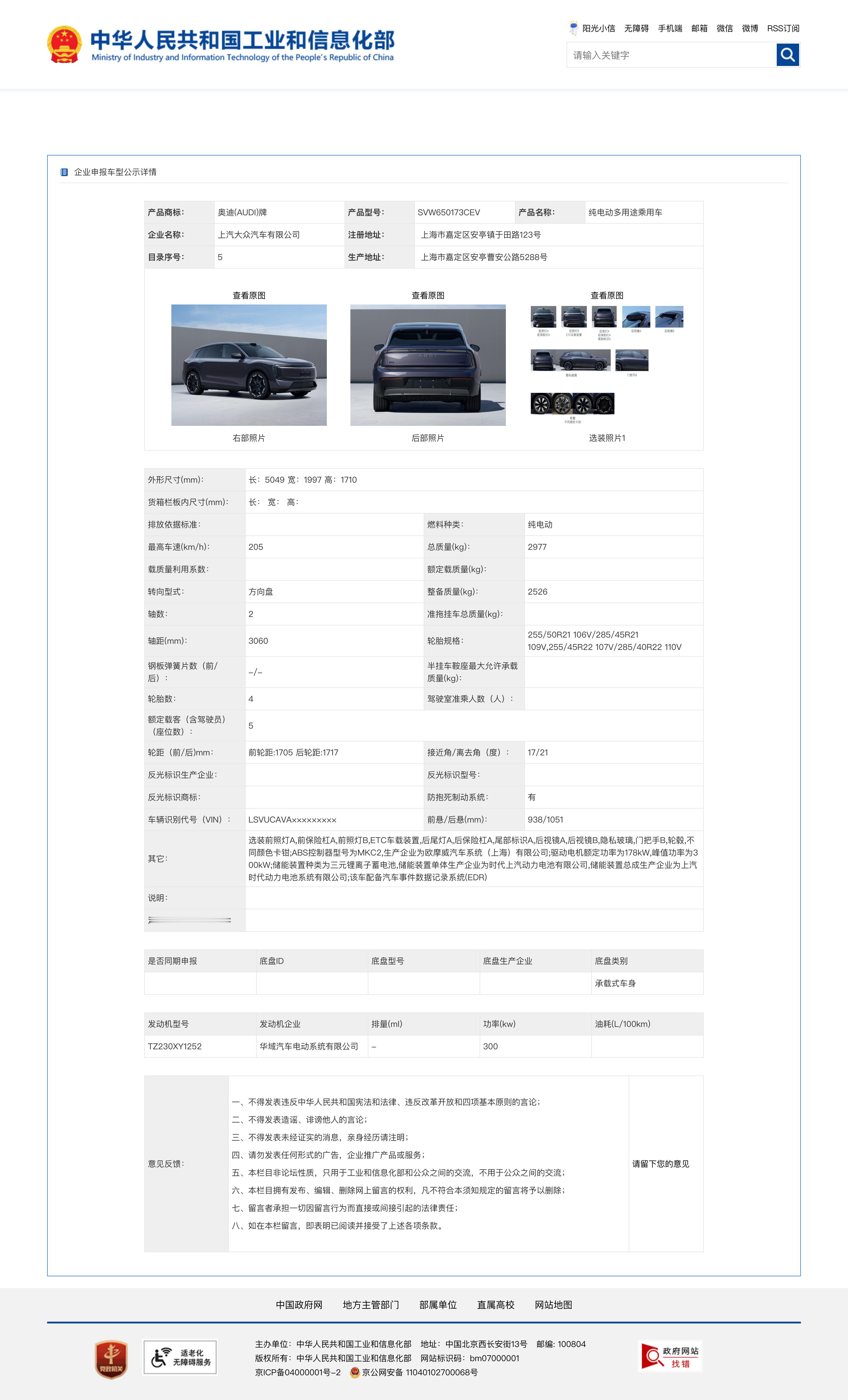 AUDI E7 X申报图曝光,作为刚刚在广州车展全球首发的奥迪E SUV概念车的量产版本,有两驱和四驱版本可选,预计2026年上半年正式发布上市。大v聊车