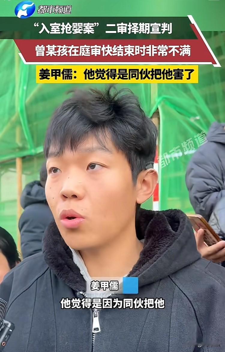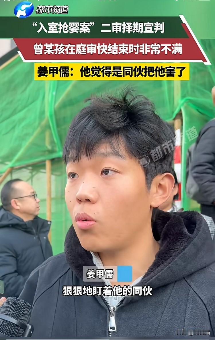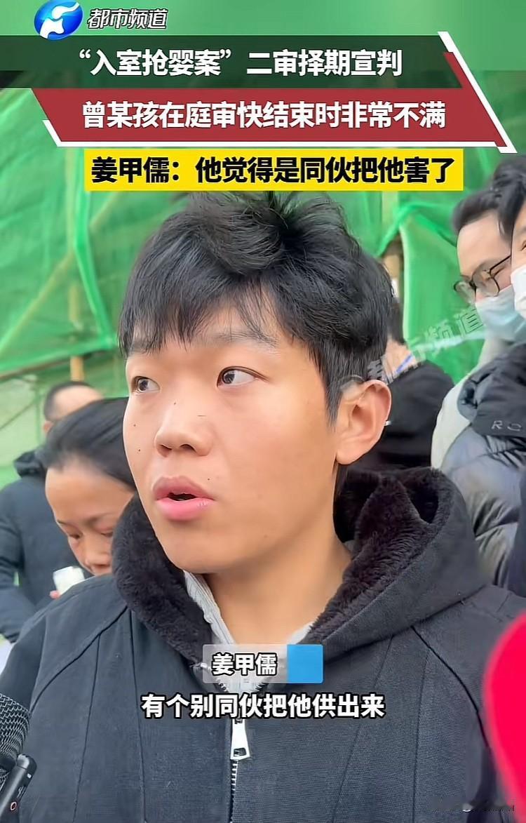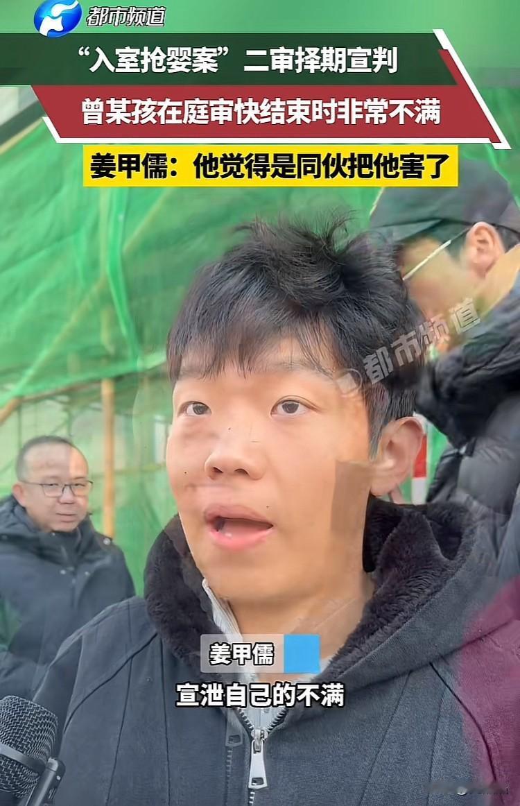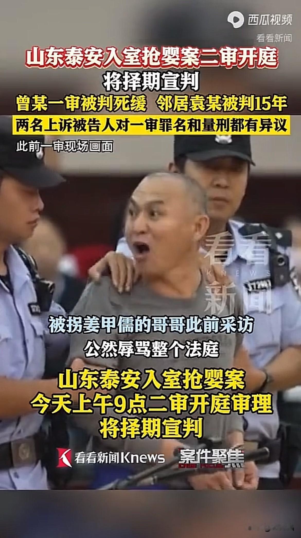 罪大恶极!山东入室抢婴主犯曾某孩一审被判死缓,到现在仍毫无悔意,竟还在怪罪同伙不该出卖他。 12月5日,二审结束,择期宣判。庭上曾某孩拒不认错拐卖事实,谎话连篇,在证据面前还在狡辩。他甚至死死拽着手里的发言稿,眼睛往右瞥,恶狠狠地盯着三个同伙,宣泄自己的不满,恨同伙把他供出来。 面对受害人,他完全没有一丝愧疚,反而仰头吊儿郎当的晃腿。看到姜妈恨不得冲上前扇他几个耳光,以解多年母子分离带来的悲痛和伤害。 在法庭上,他仍敢辱骂法官、同伙,对受害人破口大骂,扬言要报复,不敢相信若是法律制裁不了,让他逍遥法外,会对受害人一家,乃至社会有多大的危害。 李圣律师一定要坚持住,为受害者和家属讨回公道,捍卫法律的公平公正。