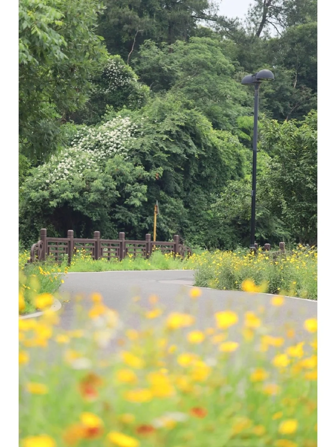 🌿每年春夏都要来逛逛,春天有晚樱夏天有大片黄秋英花海,绿道环山绕水还有个水库可以野餐看夕阳,超适合徒步骑行