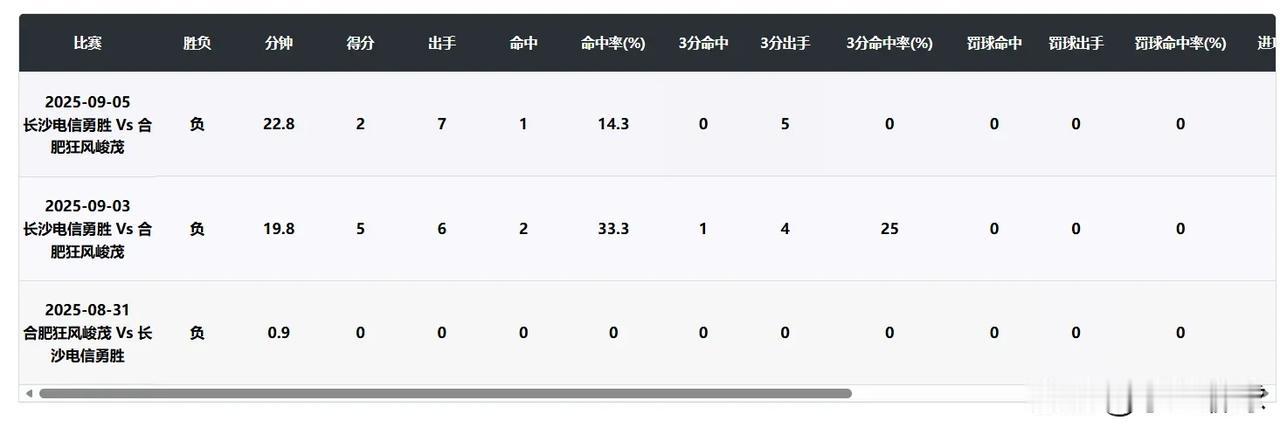 彭士峻是什么情况?NBL季后赛时场均还有十来分钟的时间,到俱乐部杯赛场均仅有1.5分钟。 我怀疑是他投射太差的原因,在NBL登场3场比赛,场均出手4.3次才命中1个,命中率只有23.1%,有一大半出手都来自不擅长的3分,当初引以为豪在U19凭身体优势得到的场均20多分,在NBL不管用啊。 按这状态一直下去,广东队很难有机会在未来用彭士峻当筹码交易或拿回一笔培养费了。 CBA俱乐部杯 CBA俱乐部杯