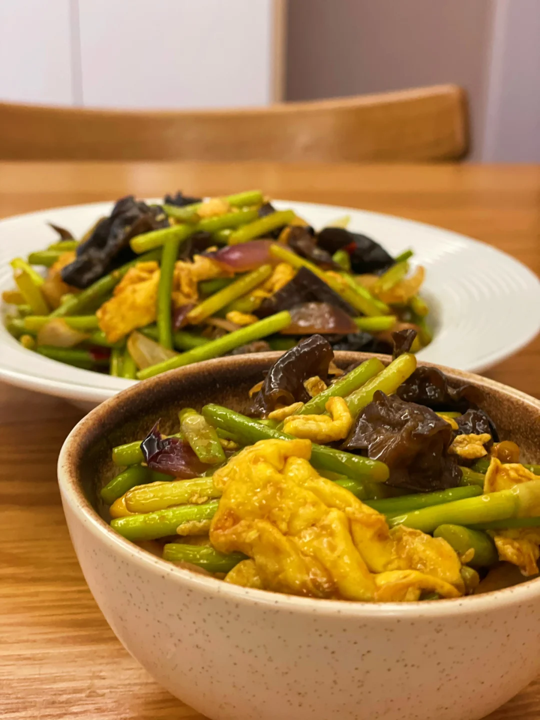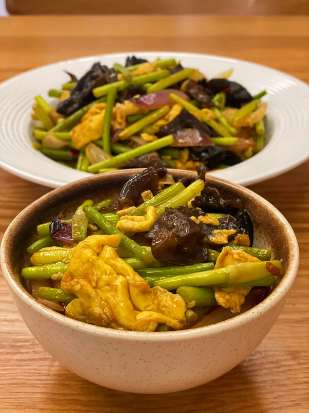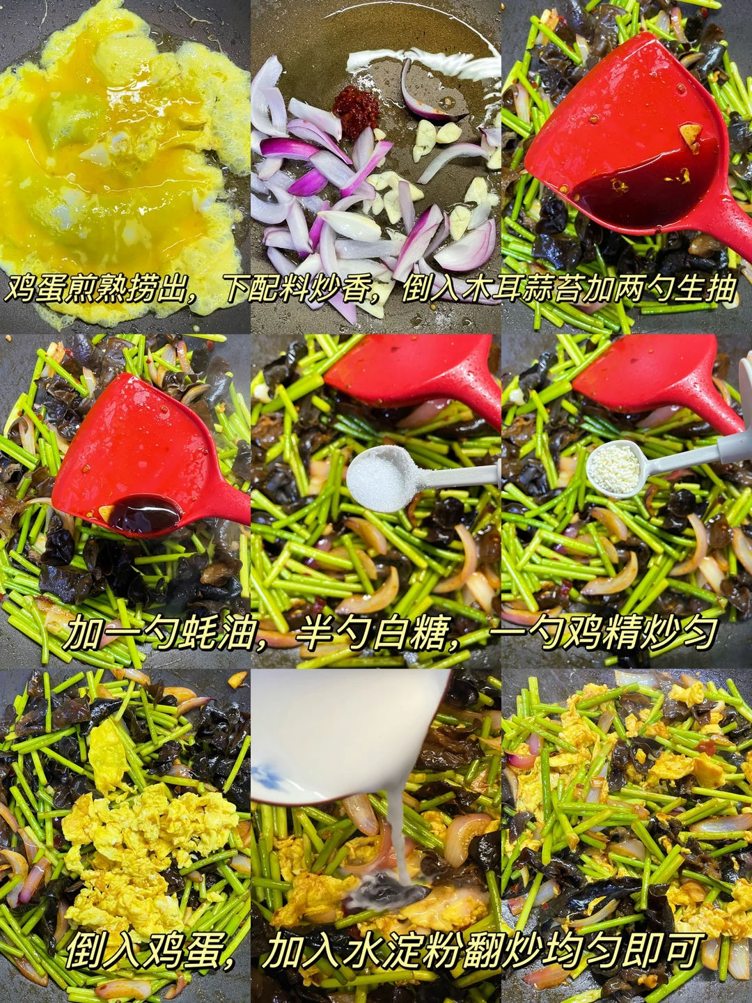 超浓郁的蒜苔木耳炒鸡蛋,妥妥的下饭菜🤤