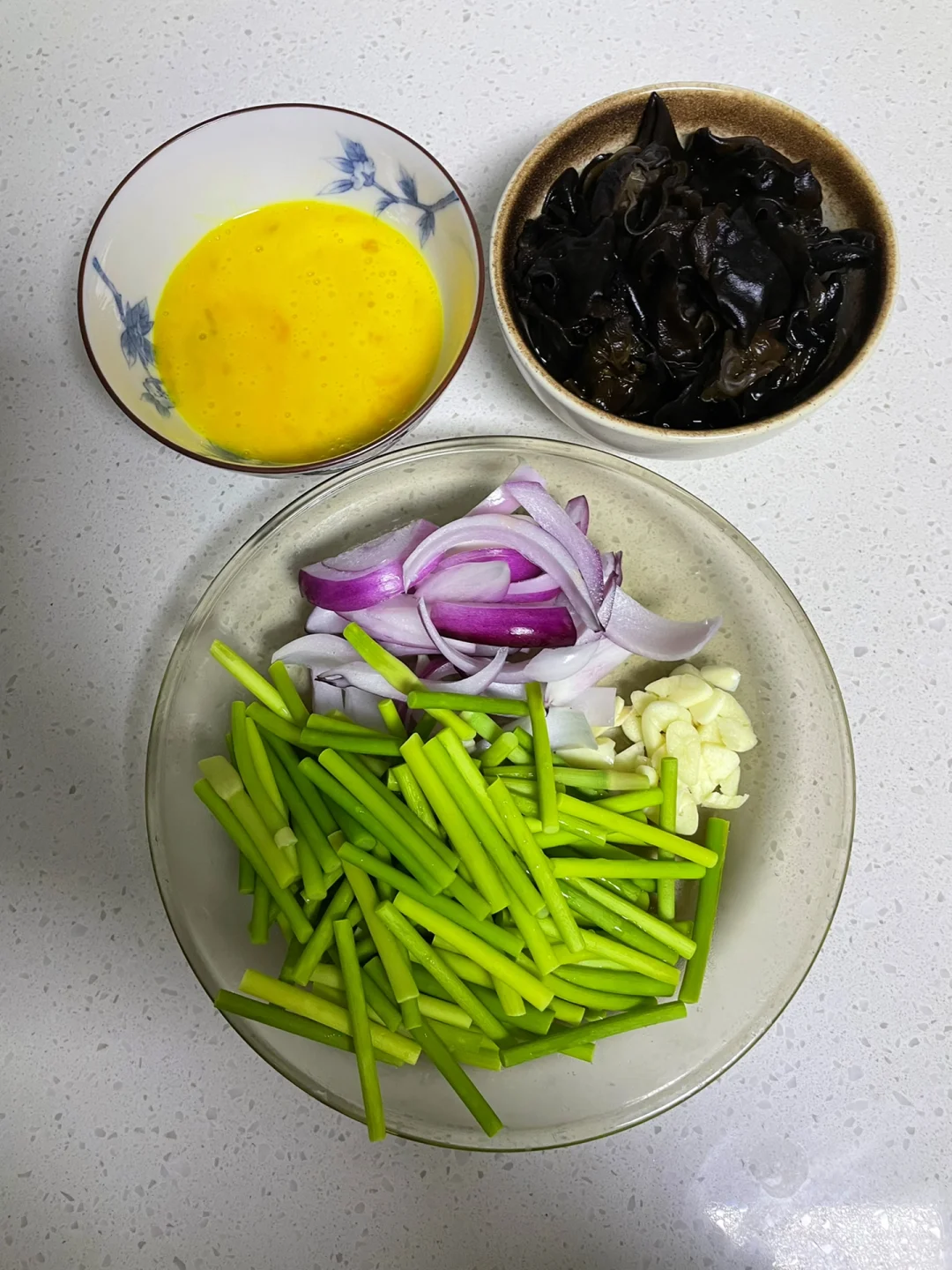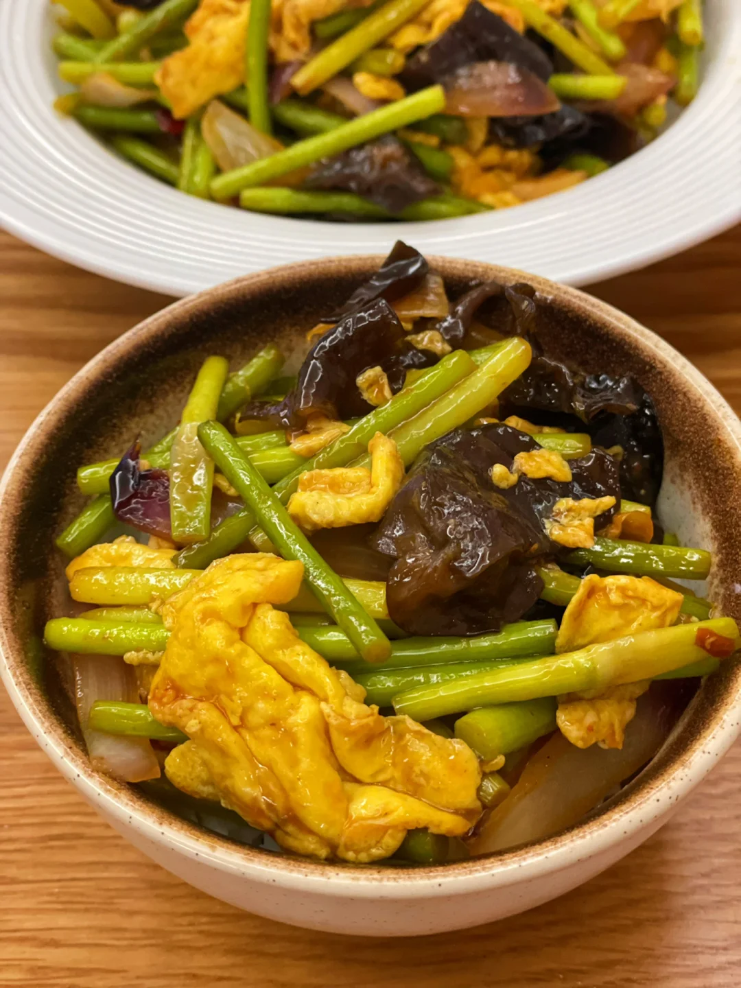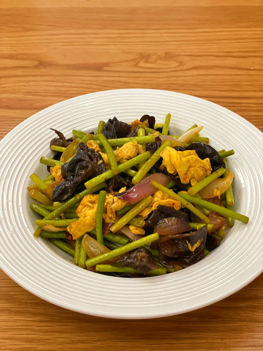 超浓郁的蒜苔木耳炒鸡蛋,妥妥的下饭菜🤤