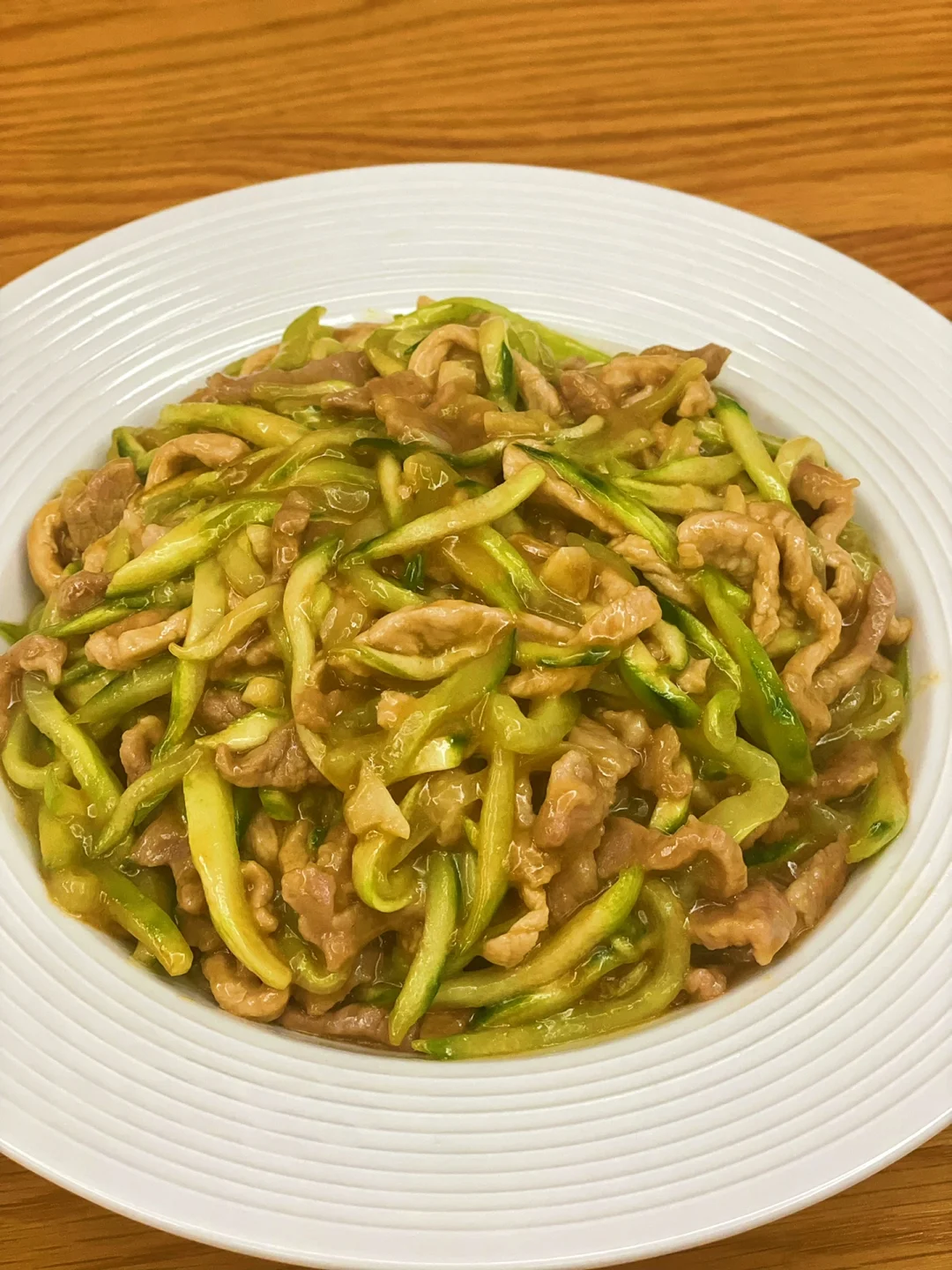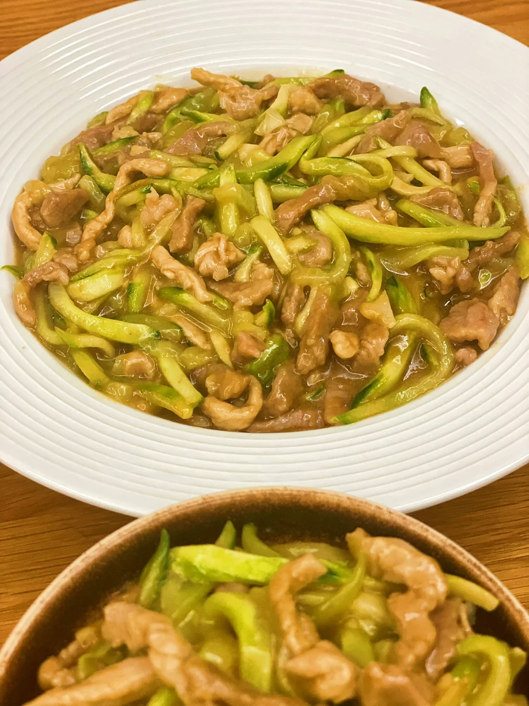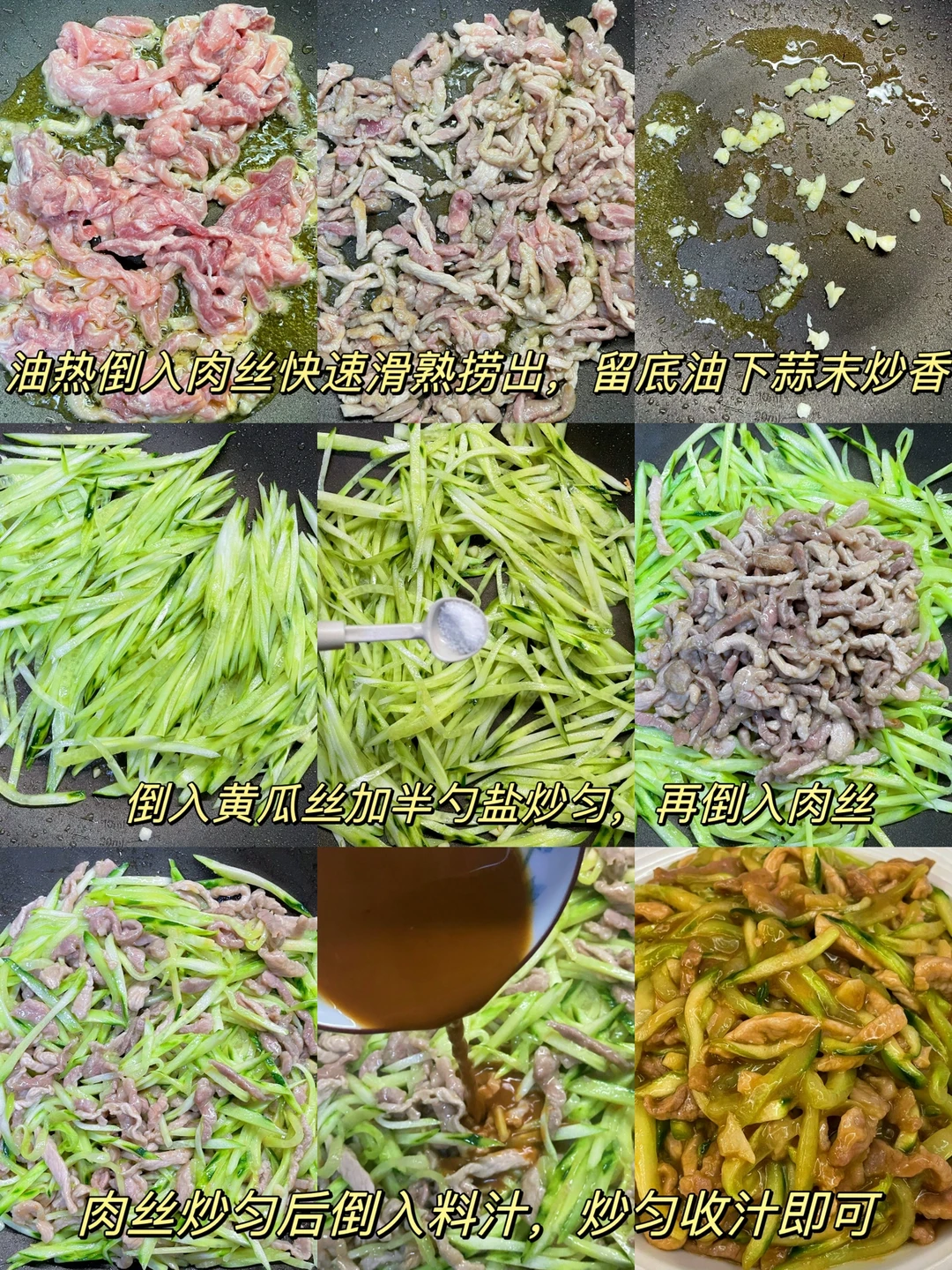 如果你最近也整天大鱼大肉,重油重盐,不如试试这道黄瓜炒肉丝,黄瓜的清香味儿拌着滑嫩的肉丝,也太爽口了,连下两碗饭都不觉得腻🥰 🥗食材:梅花肉,黄瓜,大蒜 1⃣️:肉丝切丝,加两勺淀粉和少许清水抓匀,黄瓜切丝,大蒜切末备用 3⃣️:准备料汁,一勺生抽,半勺老抽,半勺蚝油,两勺淀粉,适量清水搅匀 2⃣️:油热下肉丝滑熟捞出,锅中留底油放大蒜炒香,倒入黄瓜丝,加半勺盐炒匀,再倒入肉丝快速炒匀,最后倒入料汁拌匀收汁即可