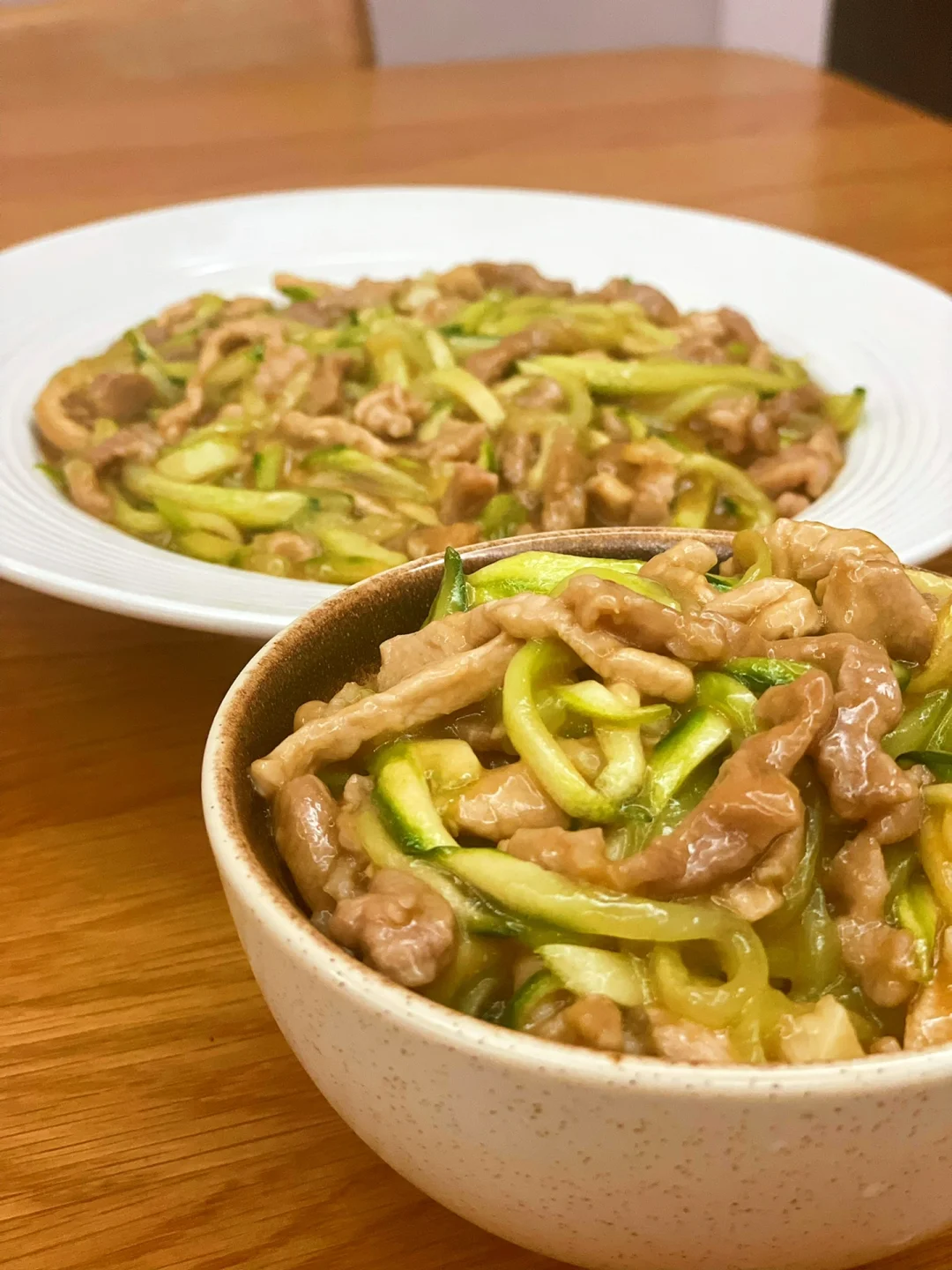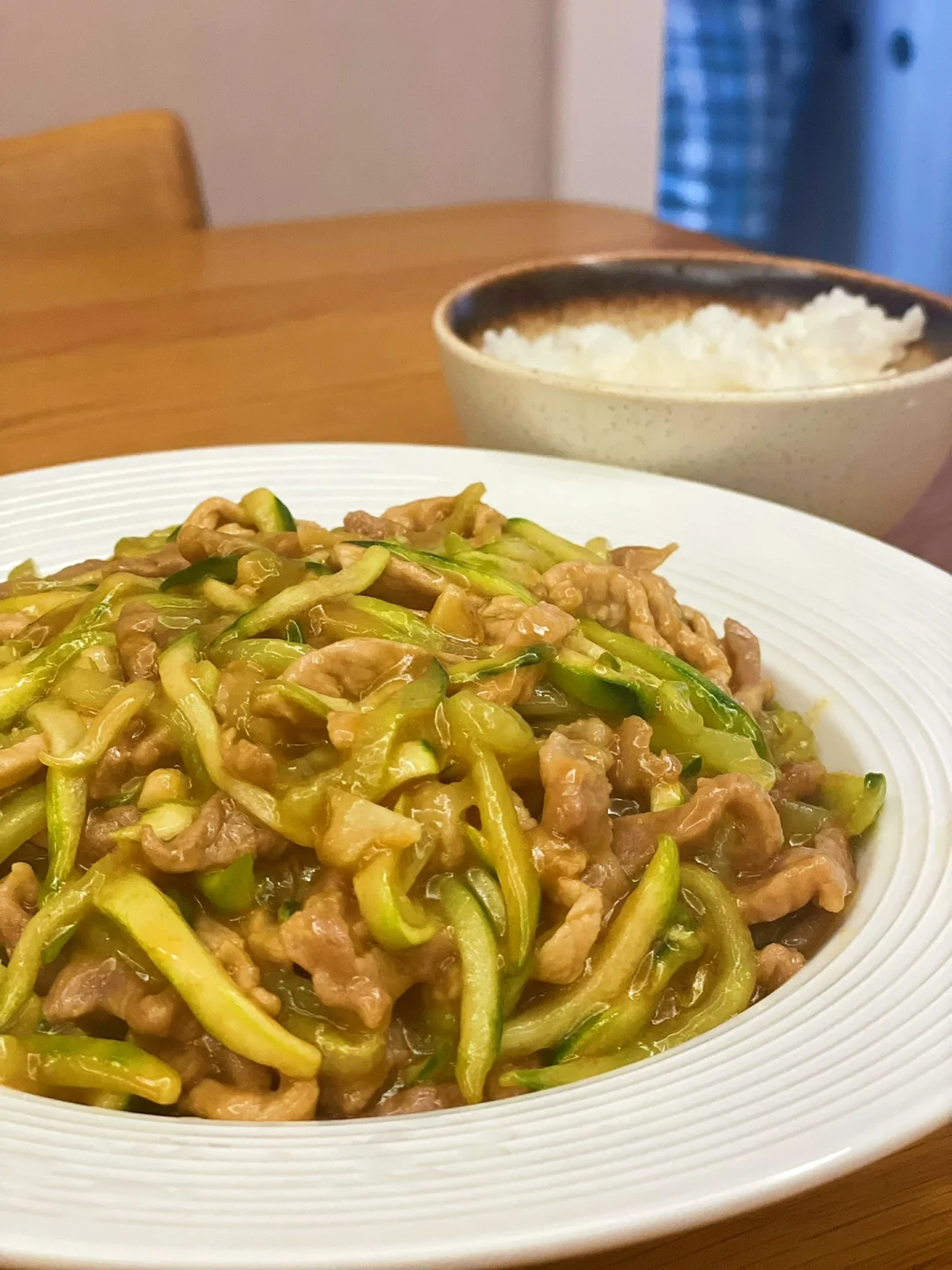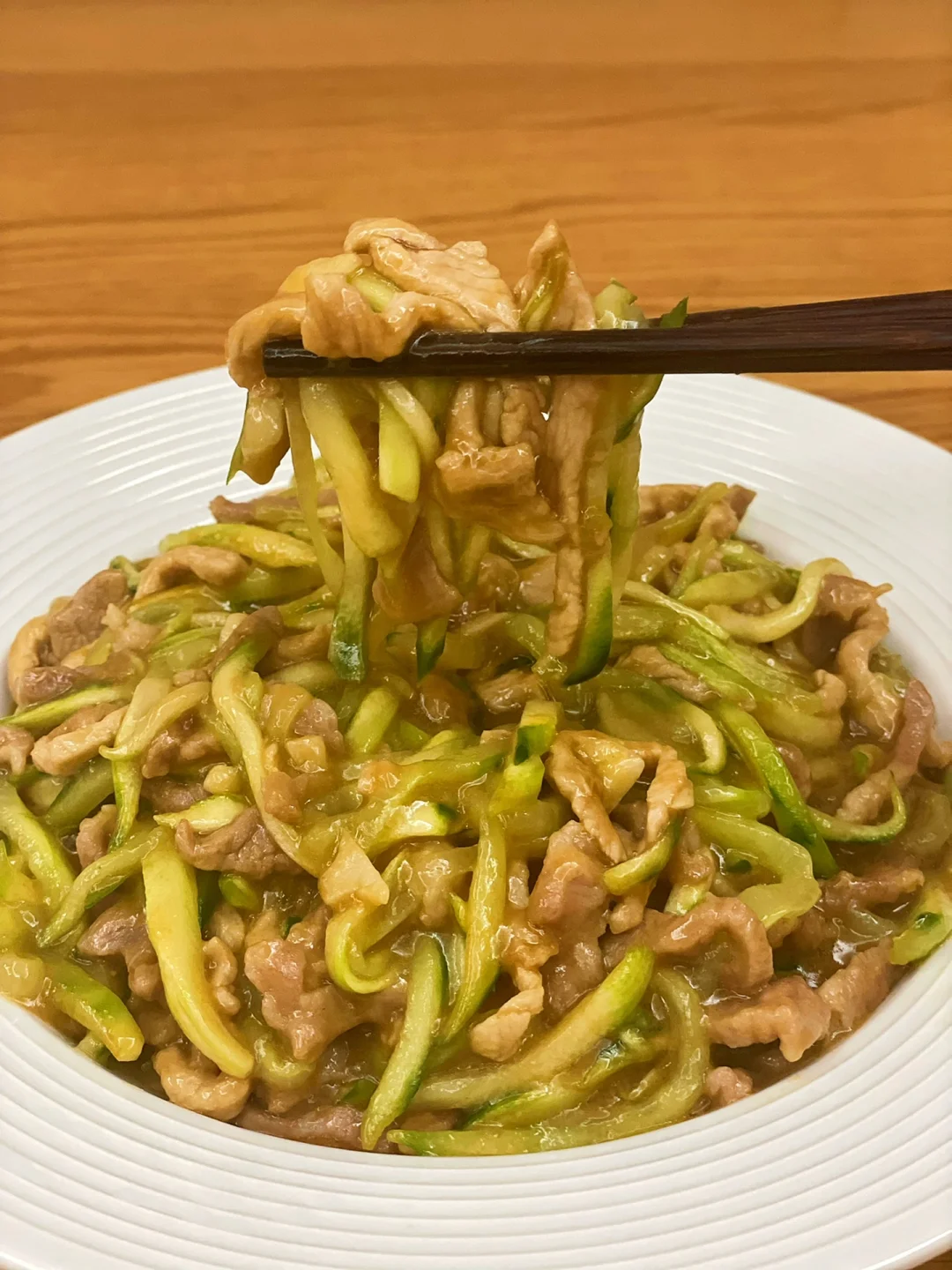 如果你最近也整天大鱼大肉,重油重盐,不如试试这道黄瓜炒肉丝,黄瓜的清香味儿拌着滑嫩的肉丝,也太爽口了,连下两碗饭都不觉得腻🥰 🥗食材:梅花肉,黄瓜,大蒜 1⃣️:肉丝切丝,加两勺淀粉和少许清水抓匀,黄瓜切丝,大蒜切末备用 3⃣️:准备料汁,一勺生抽,半勺老抽,半勺蚝油,两勺淀粉,适量清水搅匀 2⃣️:油热下肉丝滑熟捞出,锅中留底油放大蒜炒香,倒入黄瓜丝,加半勺盐炒匀,再倒入肉丝快速炒匀,最后倒入料汁拌匀收汁即可