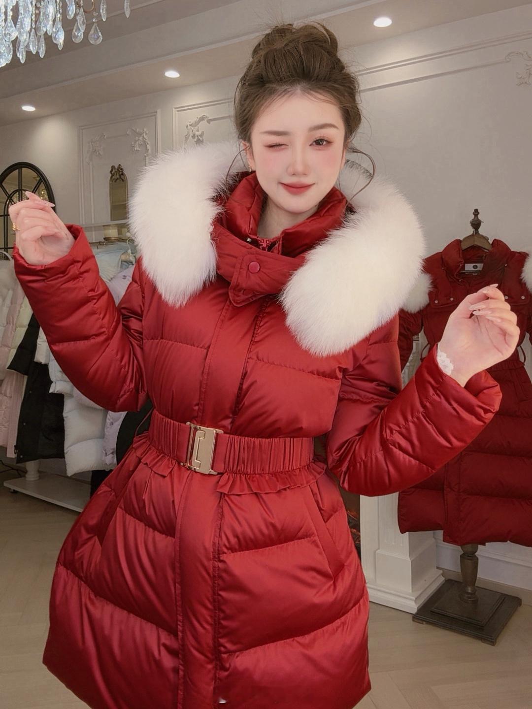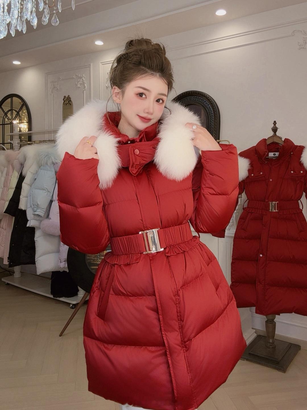 正在开这款↓草莓布丁羽绒外套 and 羽绒马甲都配有腰带哦,显腰身显腿长两种穿法