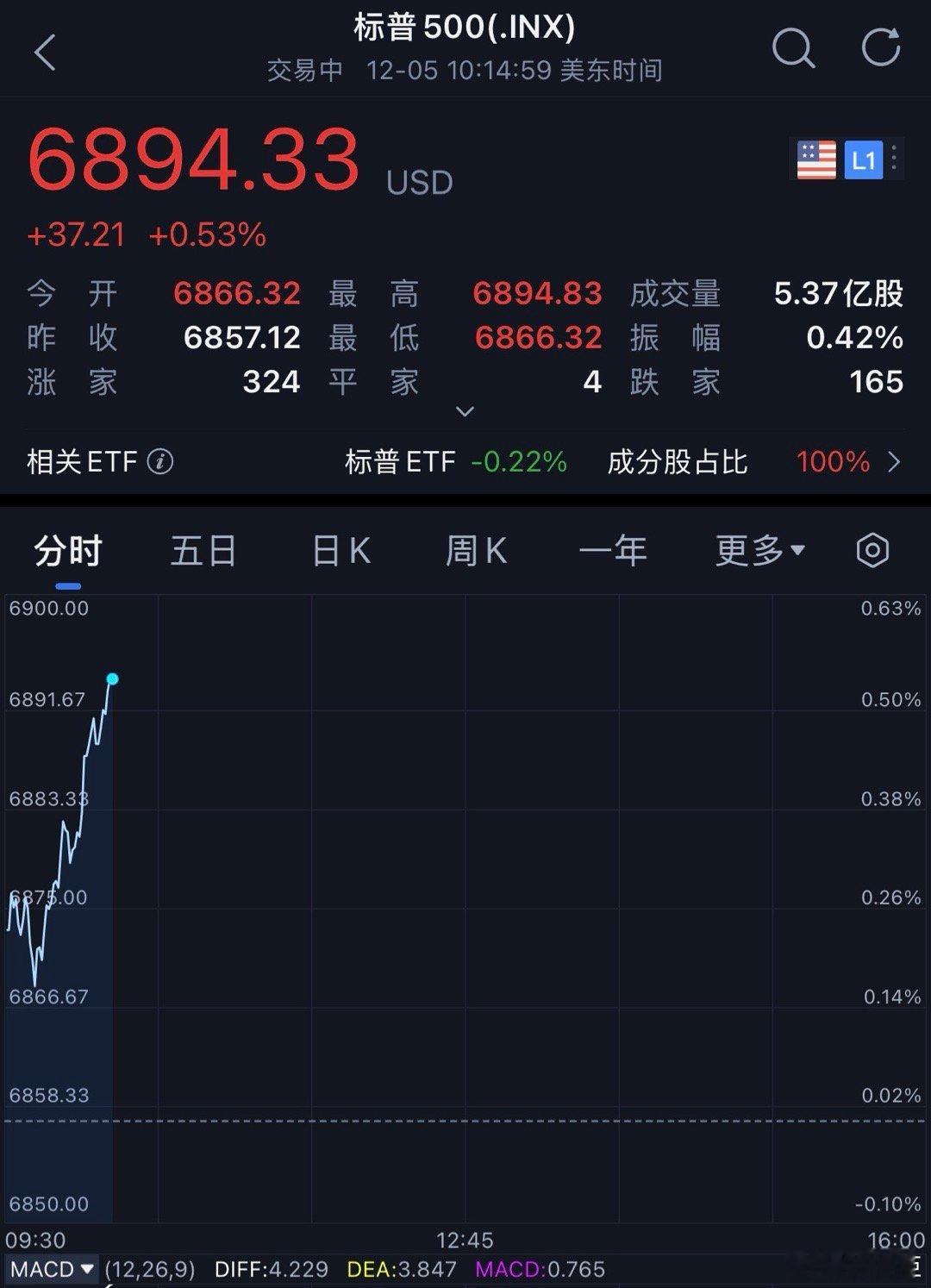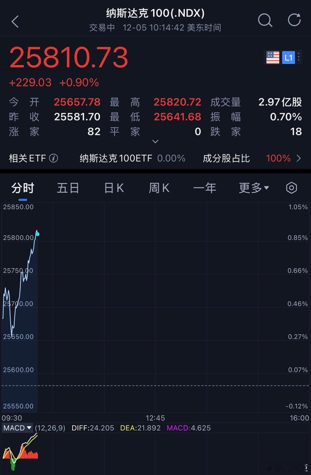 纳斯达克100指数距离历史新高还差372点(约1.44%),标普500指数距离历史新高还差46点(约0.67%)。美股股票