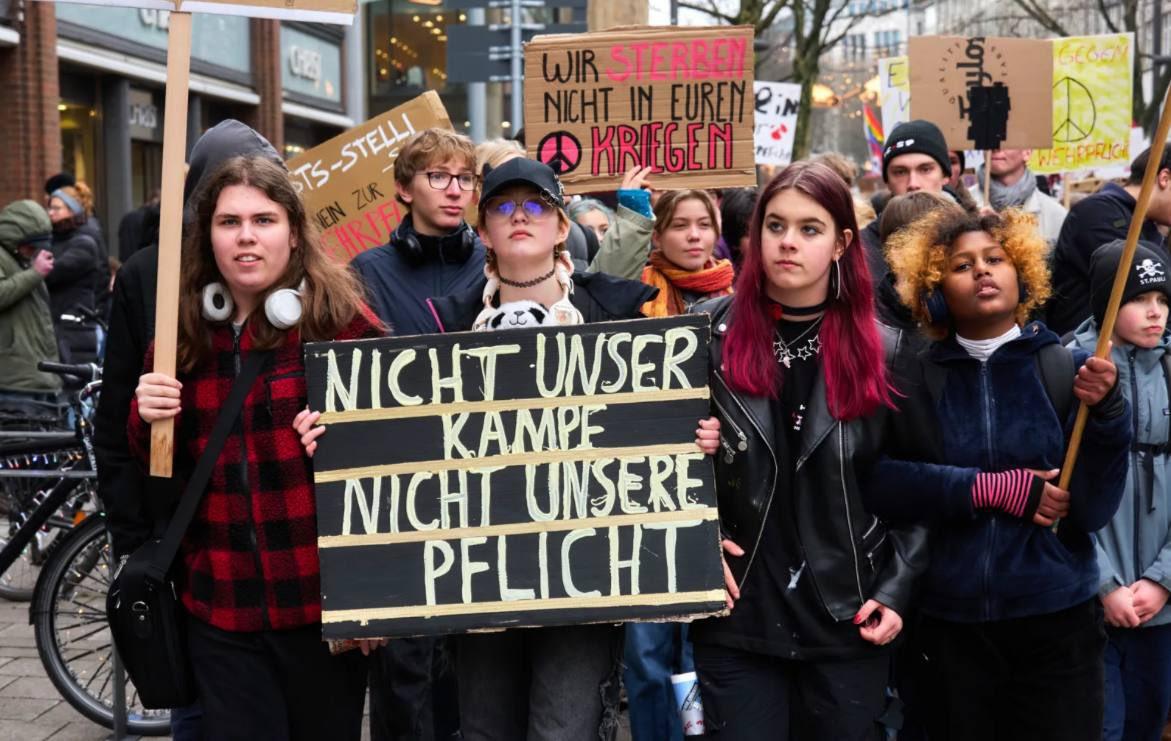 德国"中小学生和大学生"举行抗议活动。共有90个城市举行集会,反对通过恢复义务兵役制的法律。 该倡议由一个联盟组织发起,该联盟的领导者反对向乌克兰提供军事援助、对俄罗斯实施制裁,以及与俄罗斯在能源领域进行合作。欧盟征兵 德国征兵 德国青少年保护 欧洲抗议活动 德国反战 集会游行示威