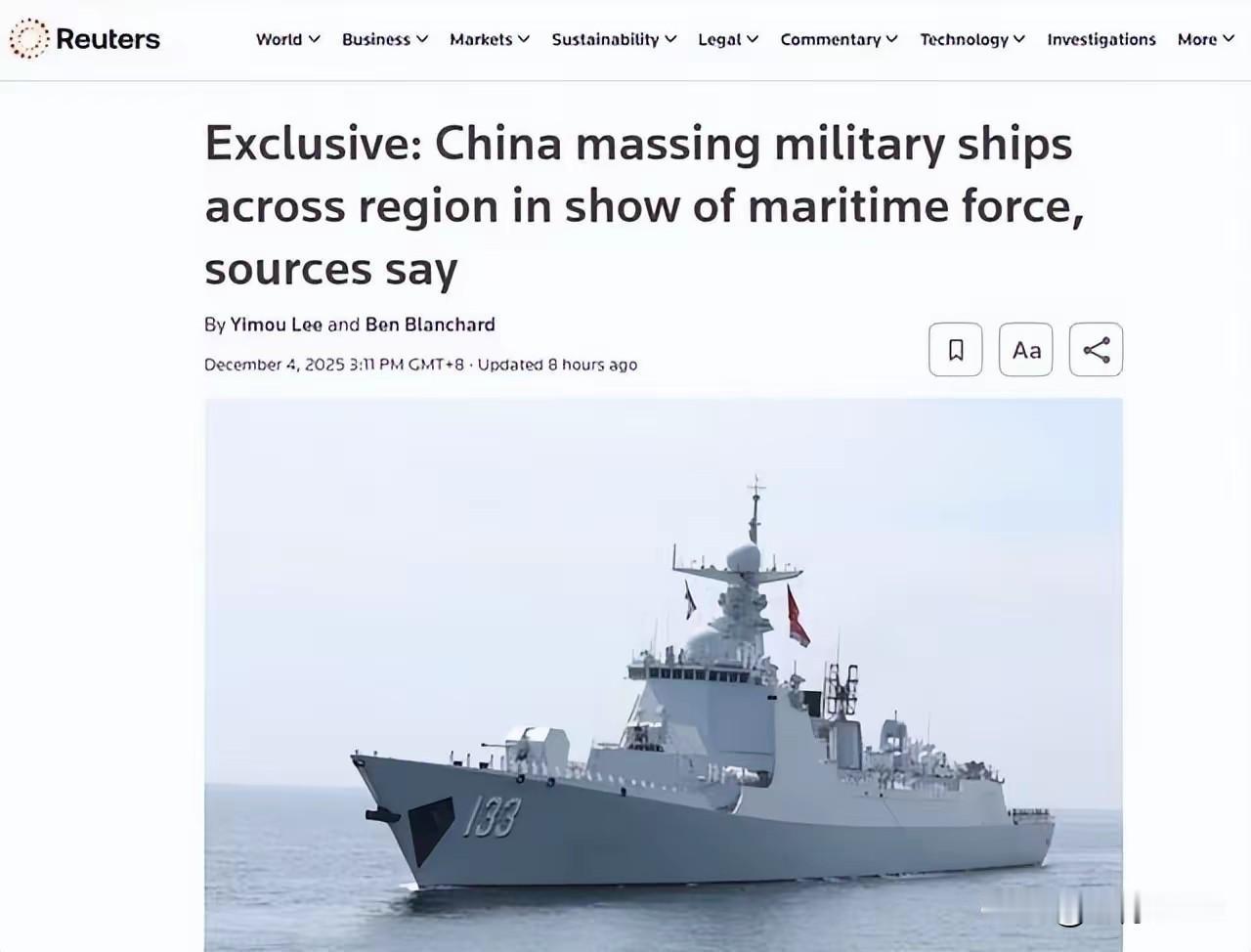 2. 上百战舰集结东部海域 英媒:大陆最大规模武力展示?:2025年12月,中国海军和海警船在东亚水域(黄海南部至东海、南海及太平洋)大规模集结,峰值超100艘,系最大海上力量展示,多区域协调,符合冬季训练常规,未封商业航道,部分视为对外部干扰的回应。