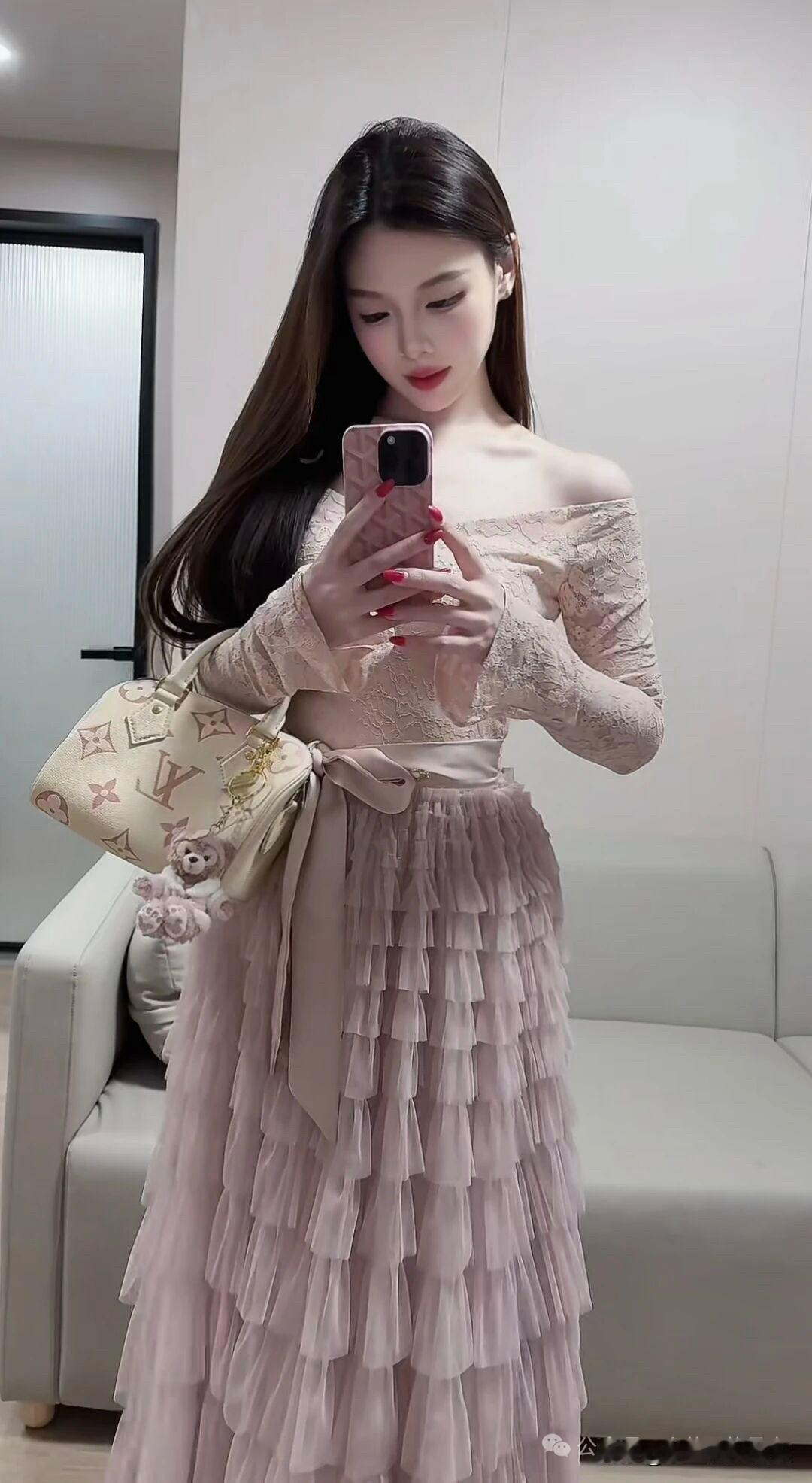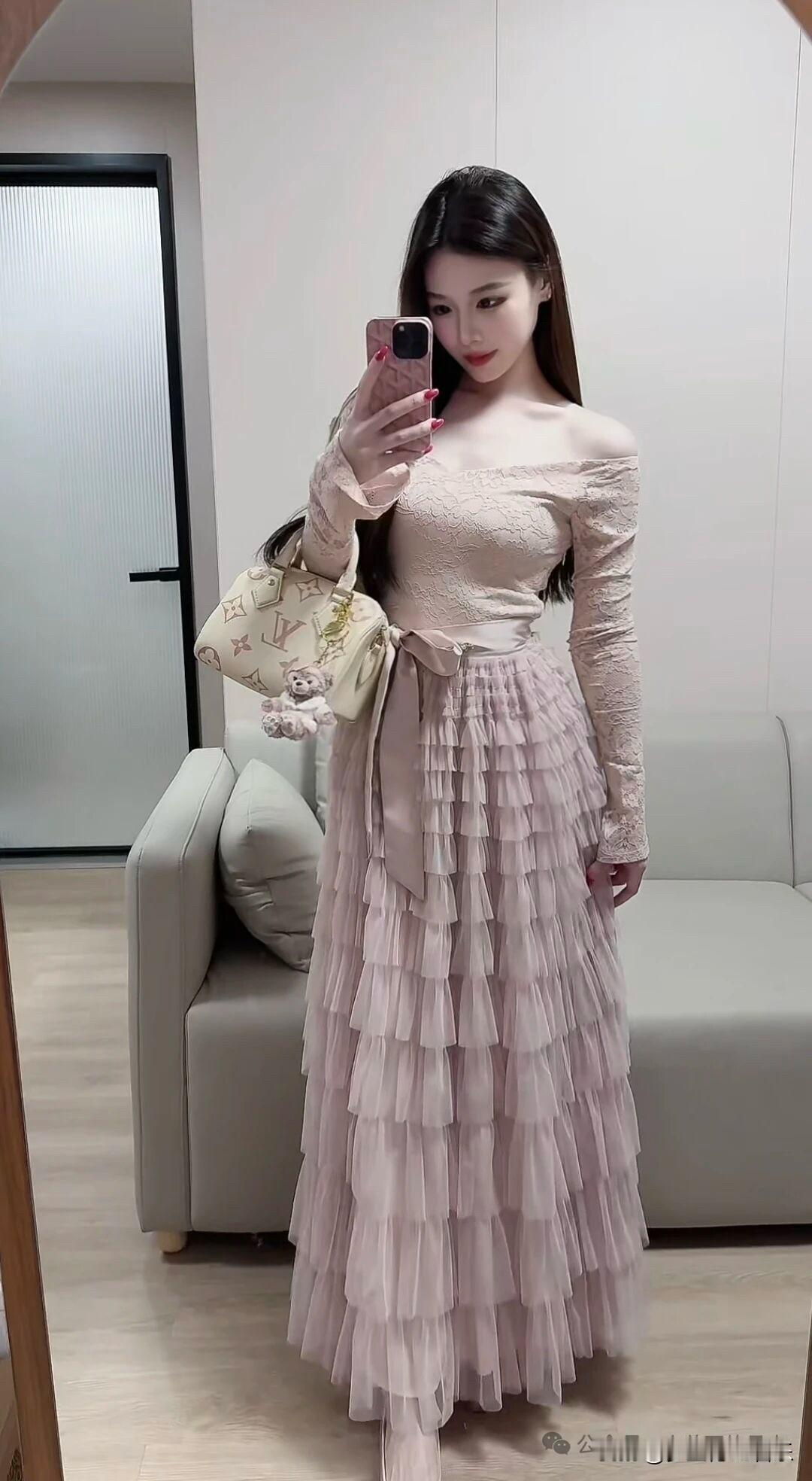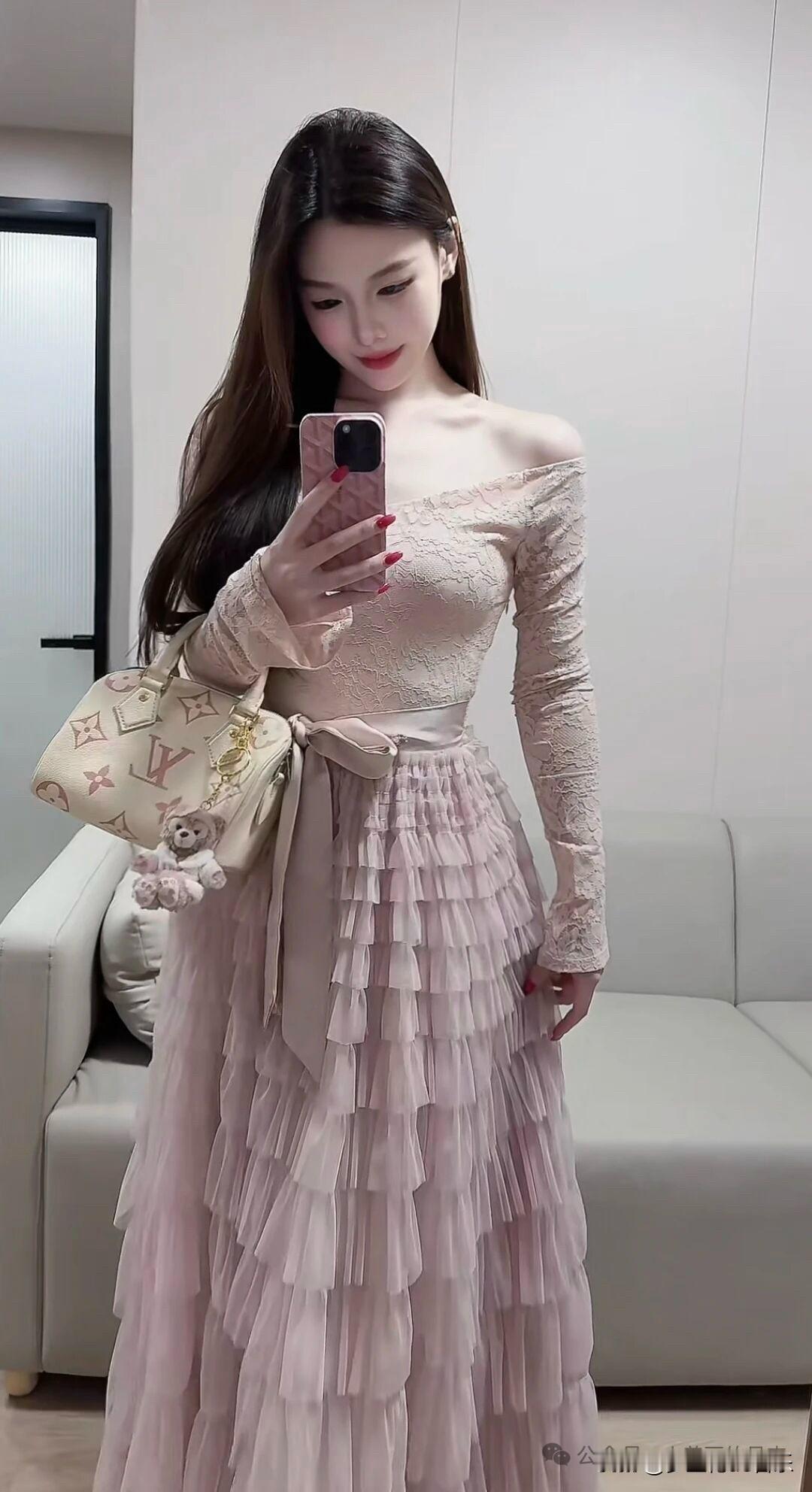 好温柔的粉色长裙呀~温柔穿搭 粉色穿搭 早秋穿搭 慵懒感 淑女 辣妹