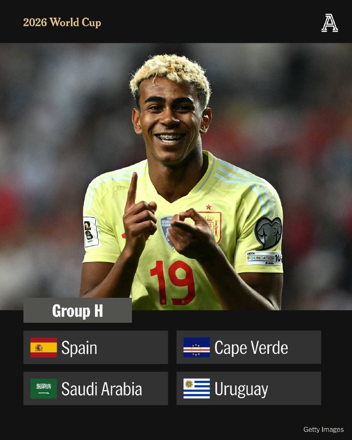 H组:西班牙、佛得角、沙特阿拉伯、乌拉圭