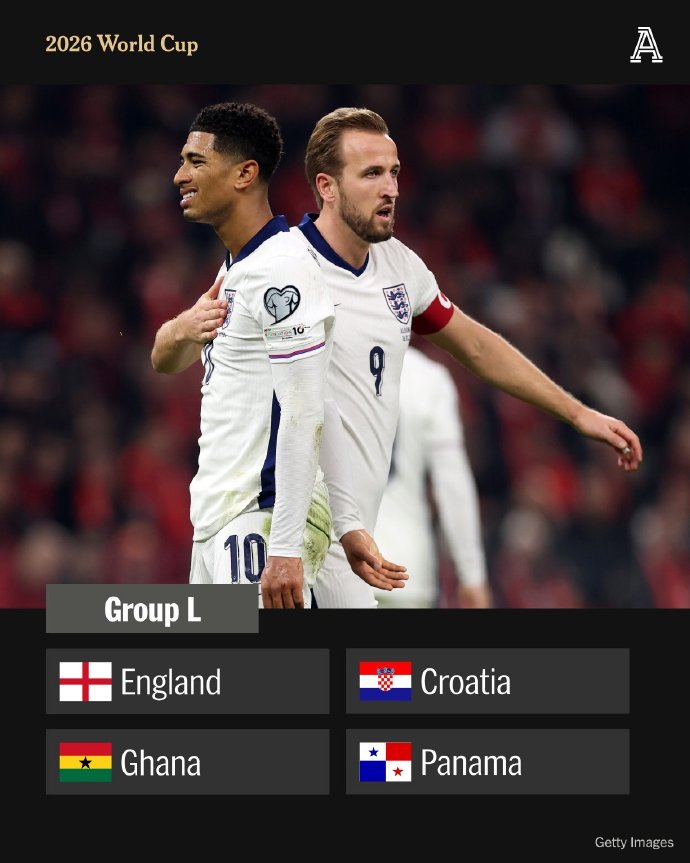 L组:英格兰、克罗地亚、加纳、巴拿马