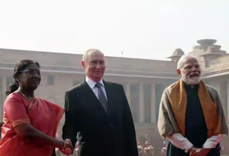 在迎接外国元首访问的欢迎仪式及其检阅仪仗队的礼节上,印度的总统和总理是共同出席,这是与世界其他国家不一样的。 这是印度总统穆尔穆和总理莫迪一起陪同普京检阅仪仗队的画面。