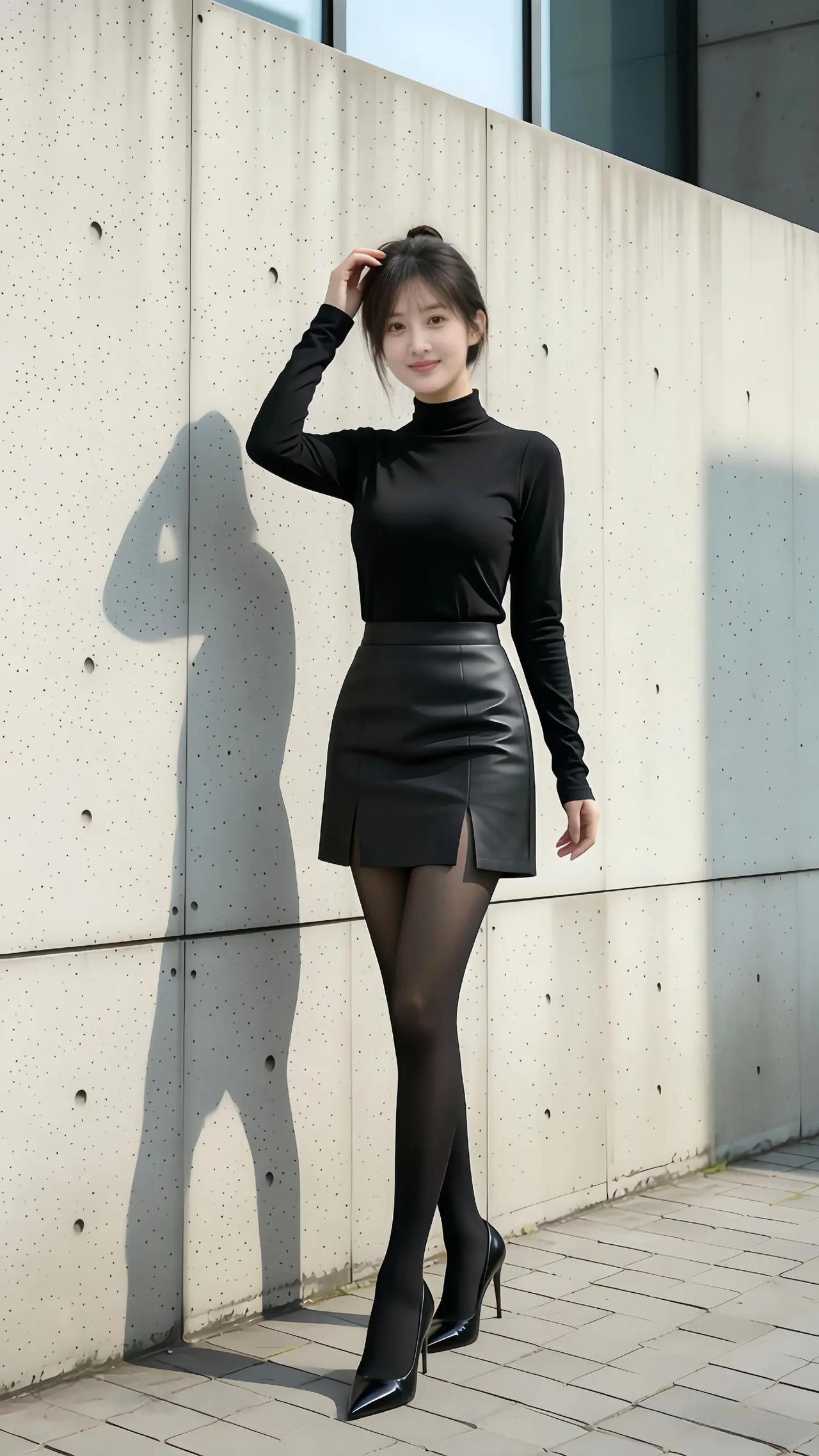 女人如何穿出含蓄的性感? 都市酷女孩穿搭指南:黑色皮裙+高领毛衣,时尚又性感!
