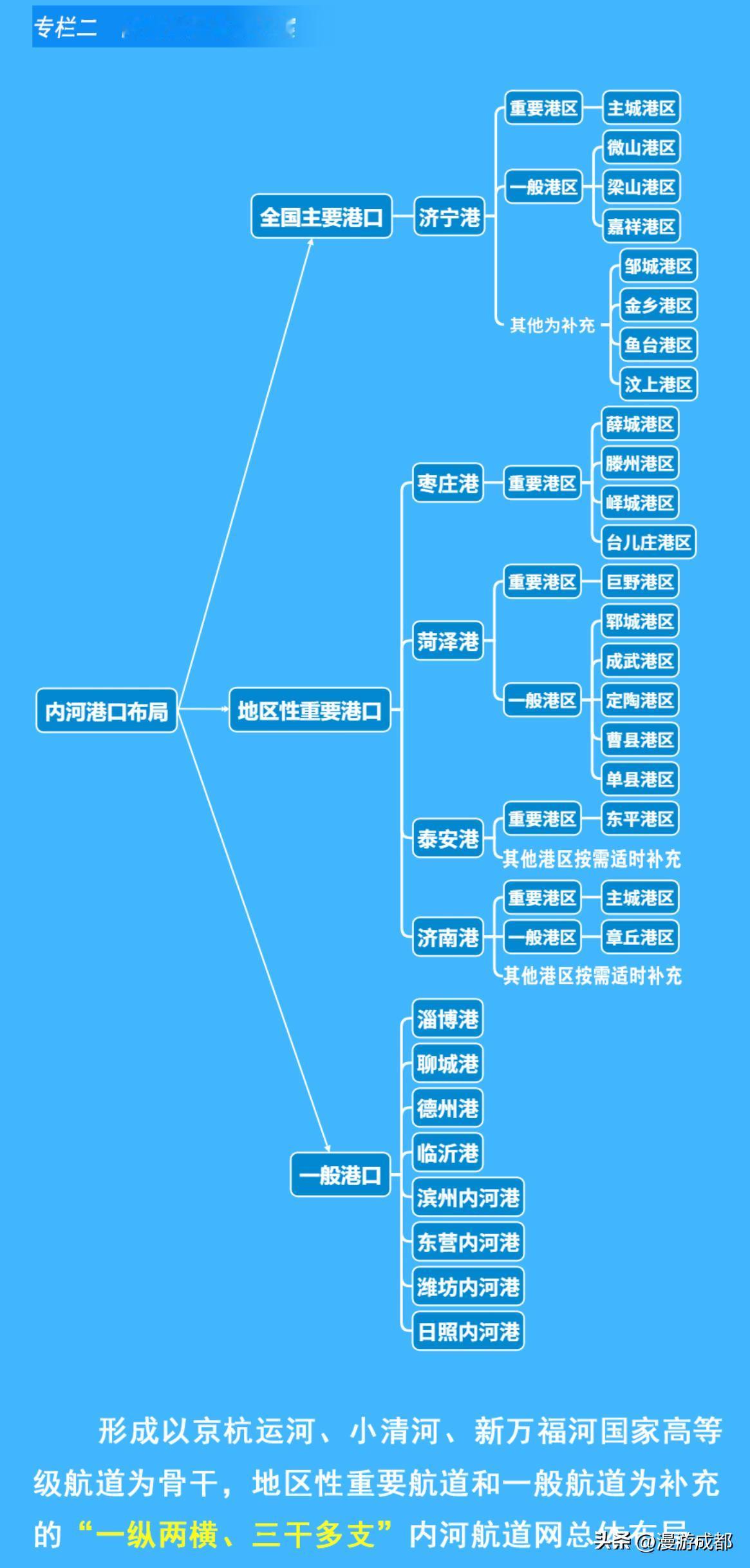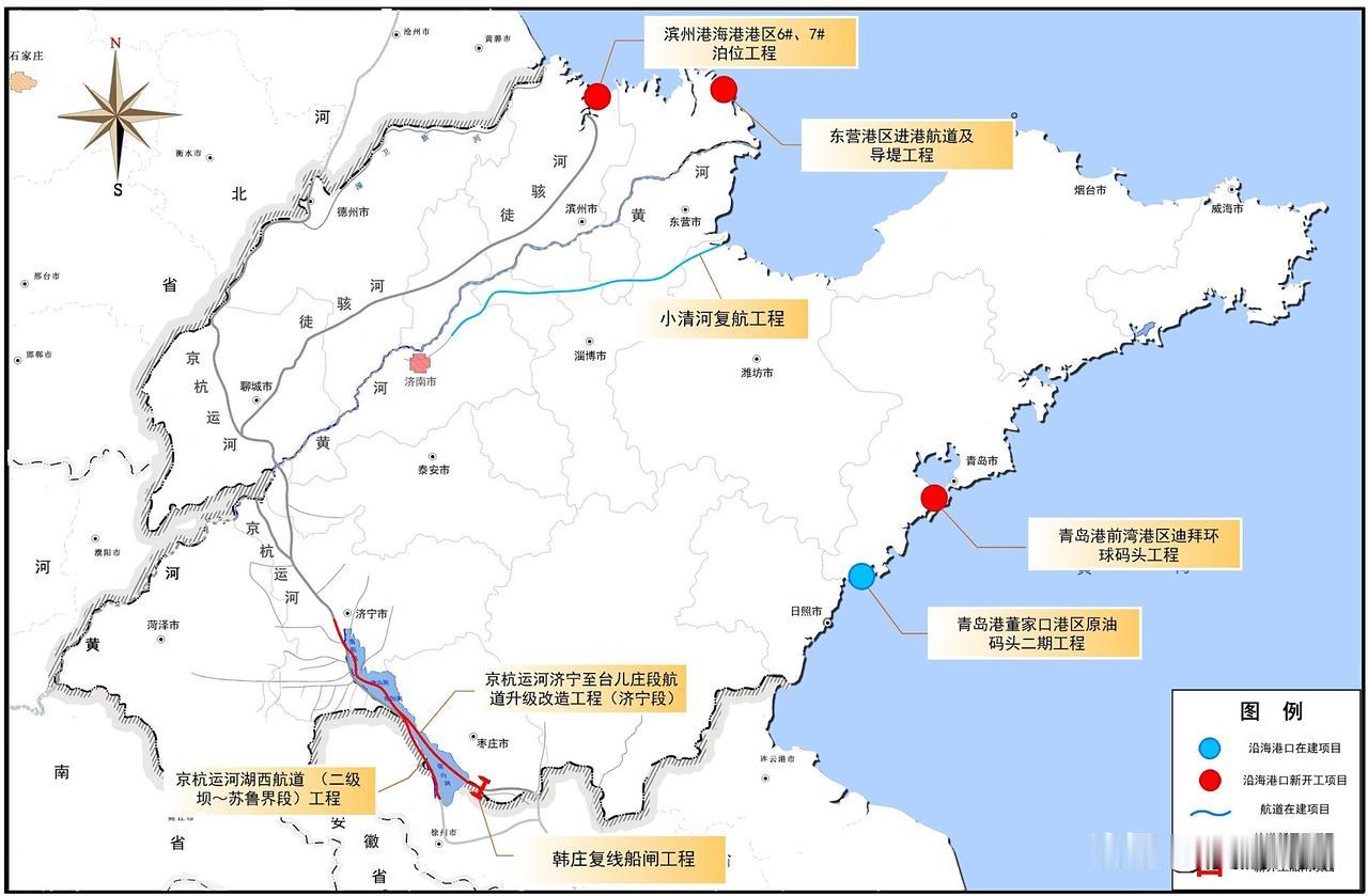 山东海岸线长,港口众多,沿海海港形成了以青岛港为龙头,日照港、烟台港为两翼,威海港、滨州港、东营港、潍坊港为补充的‘三主四辅’世界级港口群,2024年吞吐量青岛港7.1亿吨、日照港6.23亿吨、烟台港5.02亿吨,其他海港吞吐量都不高,均不足一亿吨,而山东年货物吞吐总量突破了18亿吨、集装箱量超4400万标箱,分别居全球第一、第二位,区位优势太强了! 青岛港比较全面、高端,日照港则主要是铁矿石、石油、木材、大豆等大宗干散货,烟台港主打对韩快线贸易,烟台港则是对非贸易第一口岸。 山东也是有内河航运的,主要是京杭大运河和小清河行运,黄河航运则基本忽略了[捂脸](太拉跨了)。山东内河航运以济宁港为核心,济宁港主要依靠京杭大运河,2024年吞吐量竟然达到了0.97亿吨,位居山东第四位,也是出乎意料,还以为京杭大运河北方段都不行了呢! 水运优势太大了,距离越远单价运费越便宜!