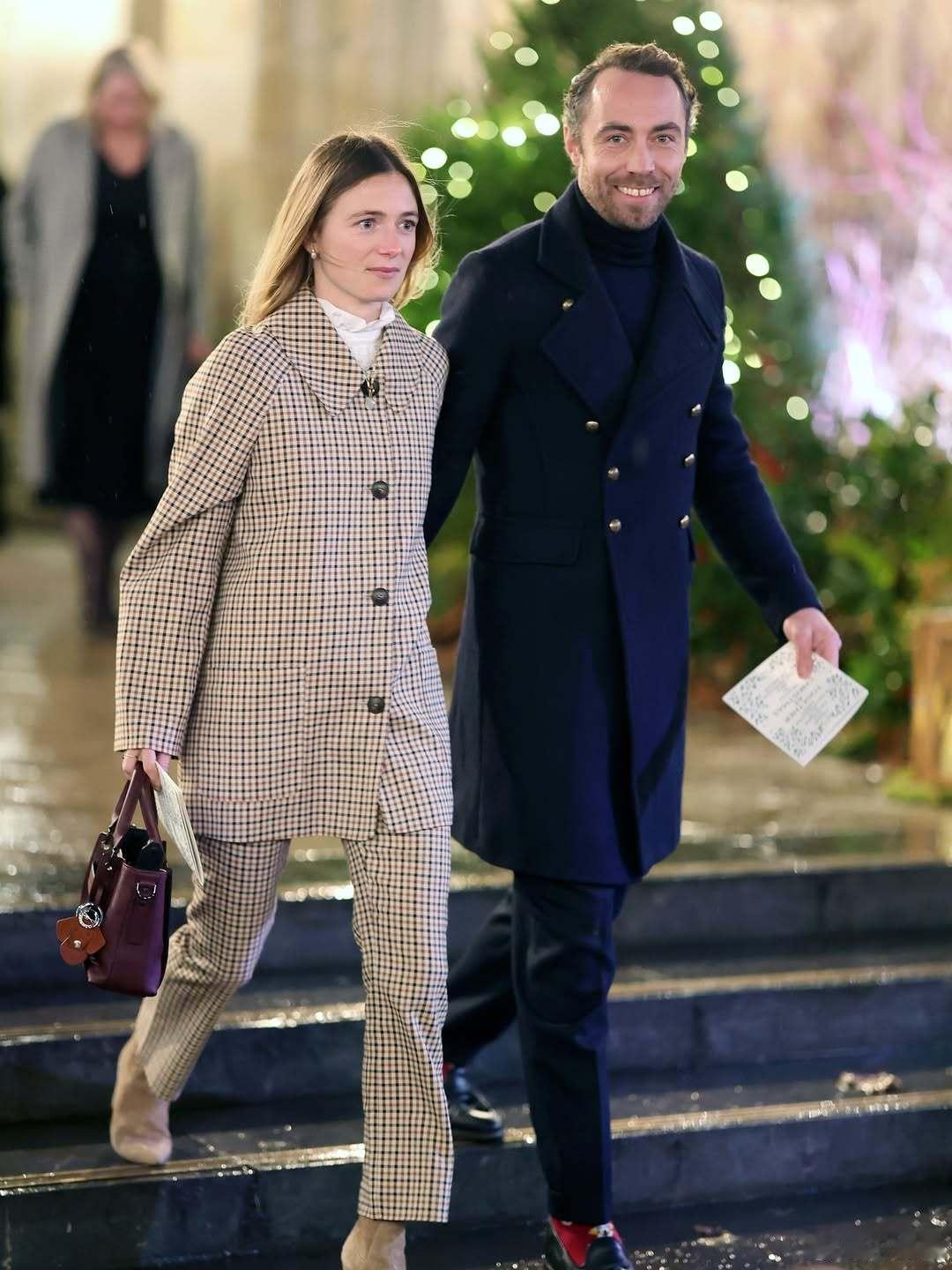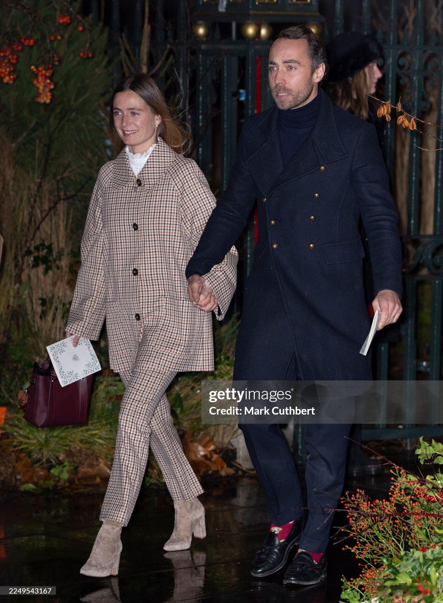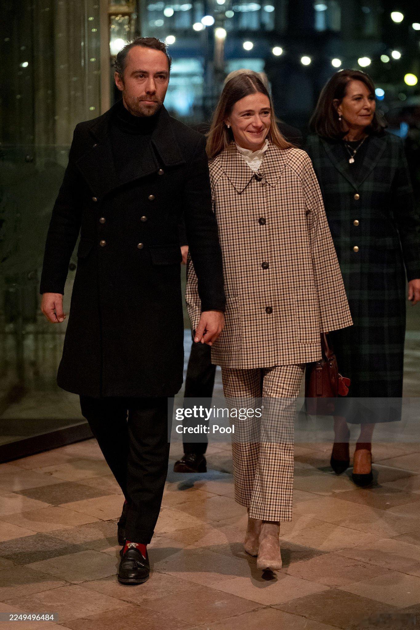 米德尔顿 12月5日,威尔士王妃的娘家人迈克尔、卡罗尔、弟弟詹姆斯、弟媳妇阿丽泽出席在威斯敏斯特大教堂举行的圣诞颂歌仪式。凯特王妃 她弟媳妇看着蛮舒服的。