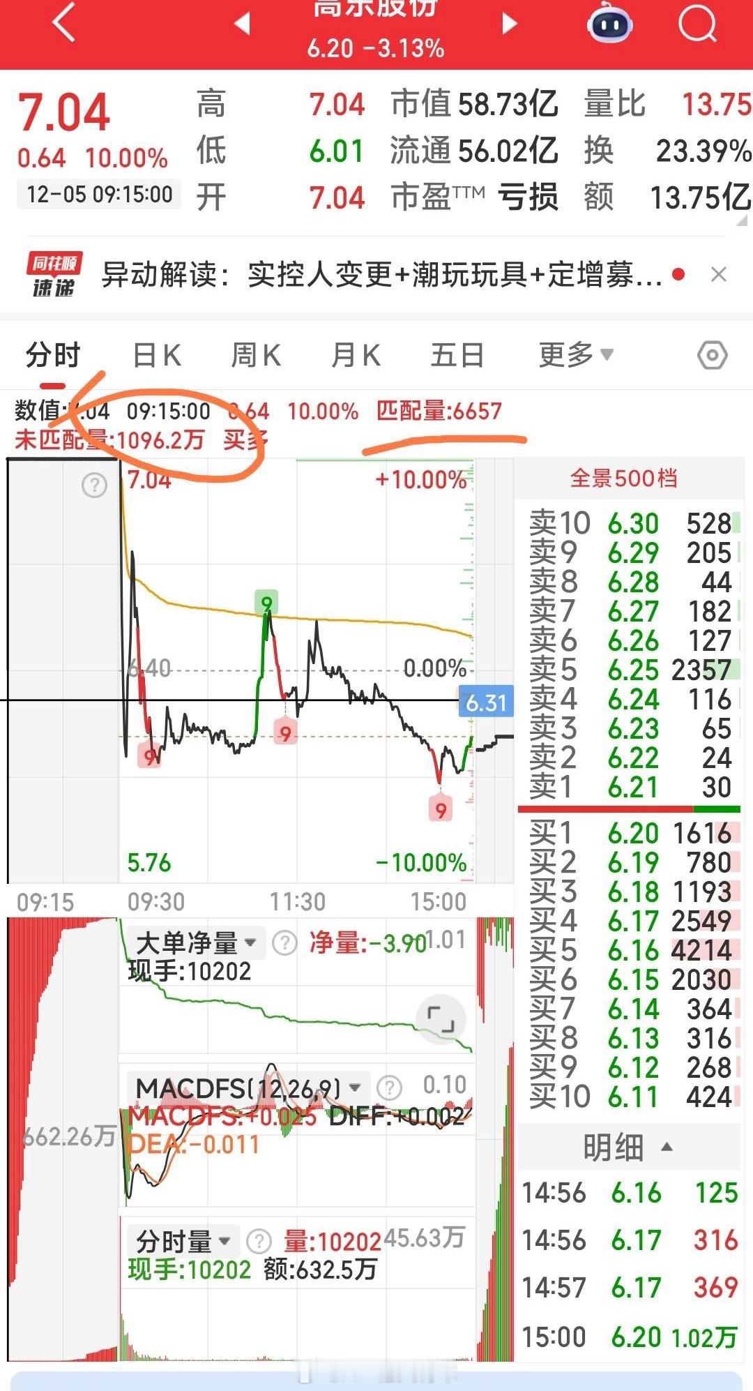 【从集合竞价说说股权转让妖股高乐股份】看看周五的情况:1,9点15分挂单1096.2万手,真是史无前例!10.96亿股哦,匹配量才6657手。2,9点20分,只能挂单不能撤单后,未匹配的有35.41万手,匹配的才2833手,可见此时虽撤单很多,但依然排队者众多。3,9点24分57秒,临完成集合竞价时,匹配的45.55万手,尚多余没匹配的12.06万手,说明涨停排队的都己上车,还有剩余挂单在卖。4,从龙虎榜挂单成交看,榜五卖买几乎重头都在开盘集合时开始。5,从以上四条看,得出一个结论:高乐股份的周五操作完全是大佬之间的博弈,买者卖者都是通道高手,因此,从涨停买进者看,下周必会自救再起风云。自救方式有二种:①高开秒板,不给出局大佬再上车机会。②低开后拉升,先制造恐慌吸筹,再大幅拉高T出底仓,完成T+0降低成本,同时激活股票的牛妖气。若我是主力会偏向第②种方式操作。北京芯大通科技有限公司(CoreC omm C ommunication Semico nductor Corporation,简称CCSC)总部位于中国北京,于深圳、成都设有专项研发中心,在上海拥有世界领先的重点实验室及国家重点IT项目,并在香港,日本,新加坡设有办事处。近年来业绩实现高速倍增,营业收入已突破10亿元。芯大通致力于成为世界领先的人工智能领域芯片的提供商,并长期为智算中心、大模型、5G通信、工业互联网、新能源汽车、人工智能、医疗电子等领域提供各工艺节点的高速数模混合类以及硅光芯片。公司每年持续高比例研发投入,构建的专家团均来自清北及常春藤的顶尖学府的本、硕、博人才。同时长期运营着EB级数据量的重点IT项目,团队人员来自全球500强IT企业、985/211重点院校和知名大厂。当前人工智能需求增长迅猛。芯大通依靠在人工智能和先进半导体等领域积累的核心能力,将芯片业务逐渐向产业上游延申布局并形成产业闭环,智算业务以及能源板块正在蓬勃发展。公司积极发挥产业链带动作用先后通过世界领先的重点实验室孵化了多家业内领先的科技创新型企业。我们正在寻找来自不同学科和背景的好奇心,我们一直高度重视员工的发展,不仅为员工设计专业和管理的双通道职业发展路径,让员工的能力得到更聚焦更清晰的发展,也同时让每个人的成长责献能够通过职级和激励体系得到及时明确的体现!加入我们,成为充满活力、创新、精进、包容的团队的一员。