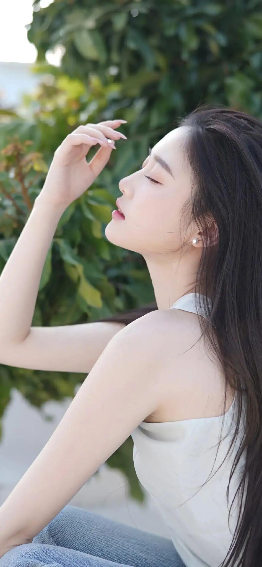 城市绿洲中的悠然自得,长发飘逸,静享自然之美。