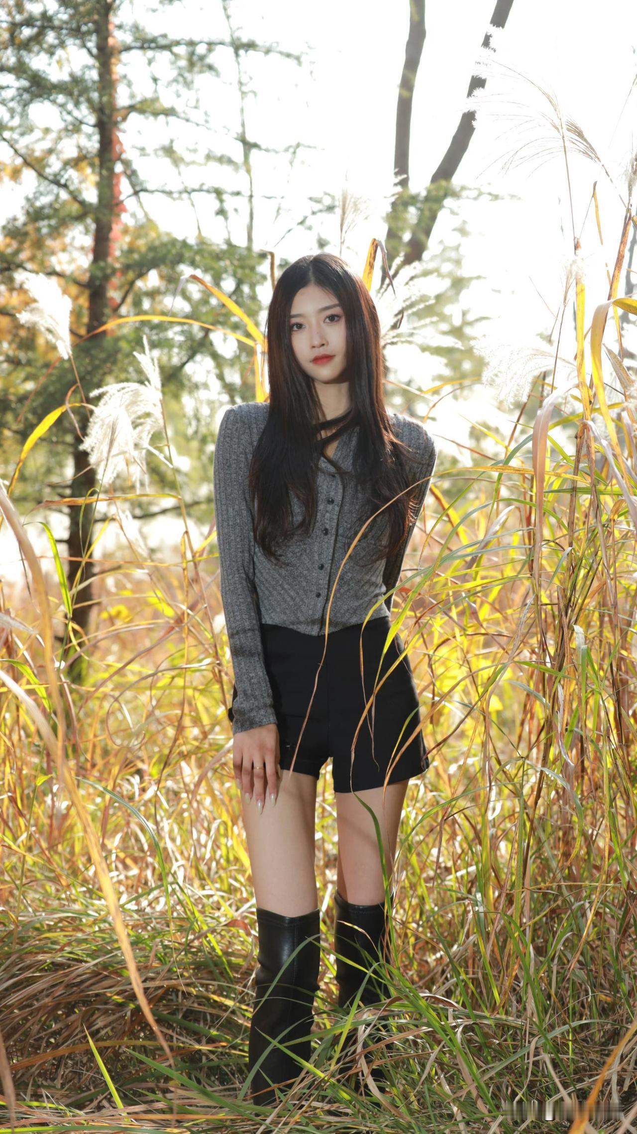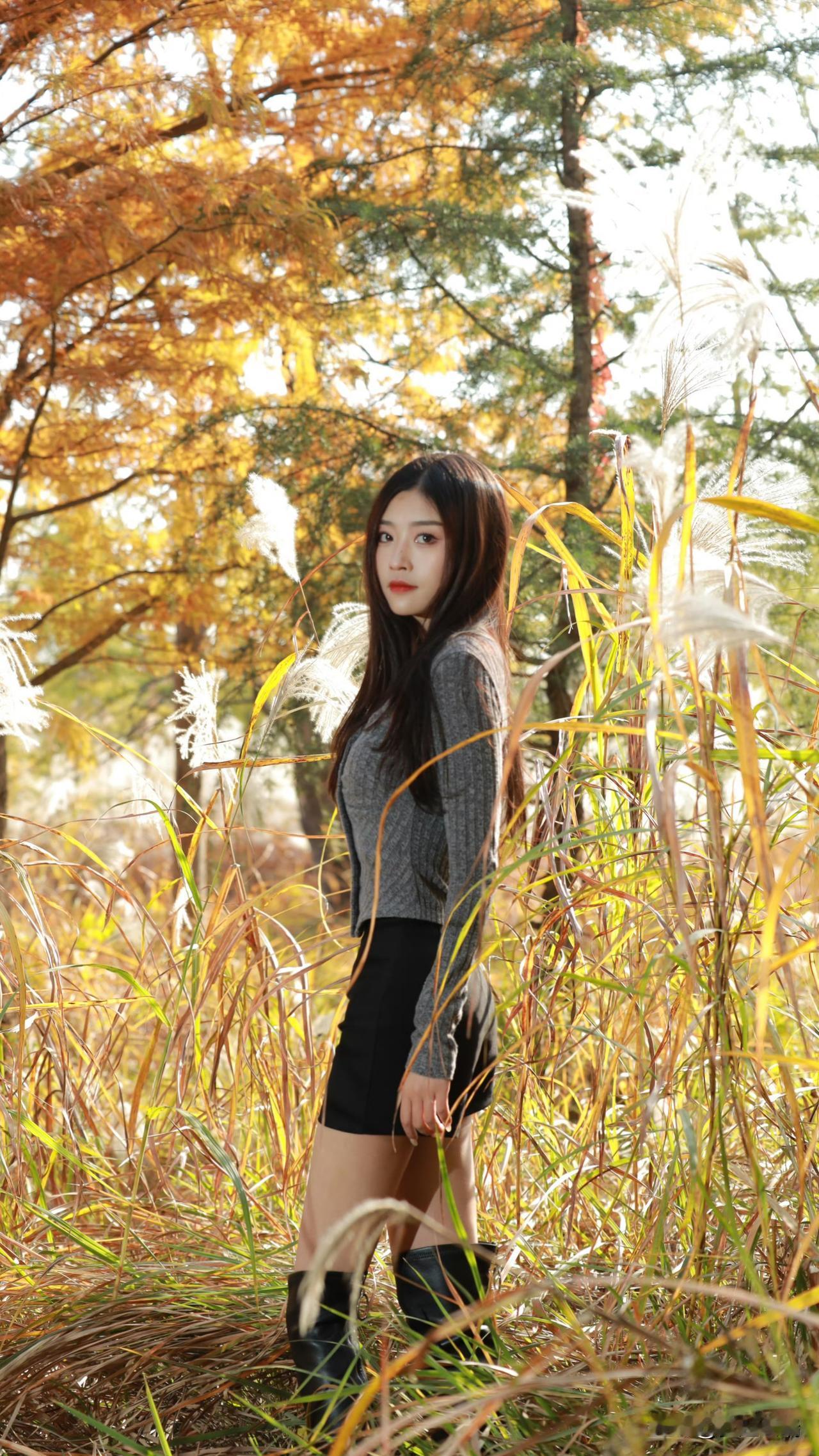 秋日暖阳下,少女在芦苇荡的温馨时光。