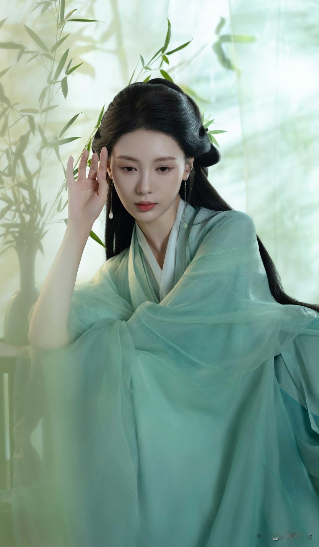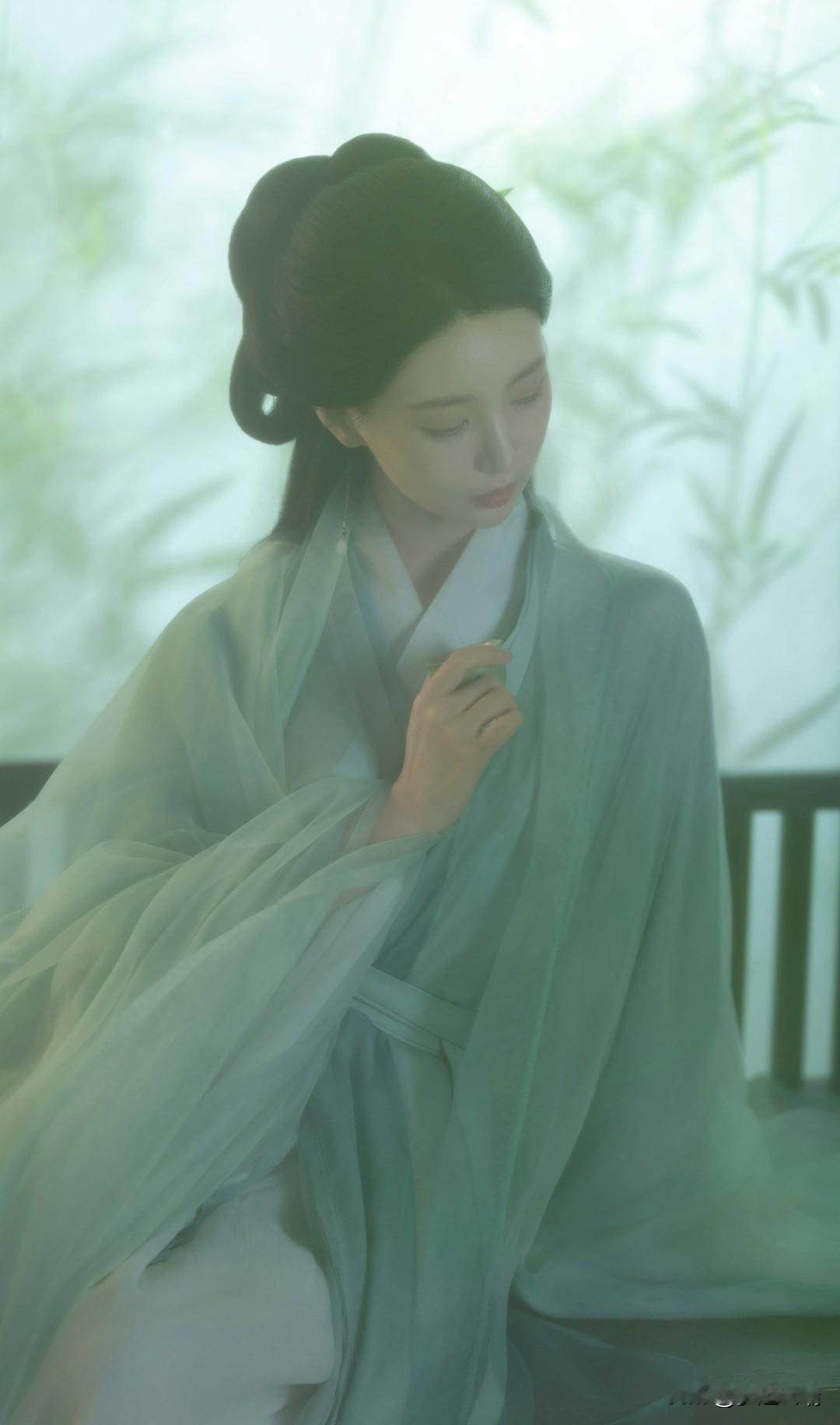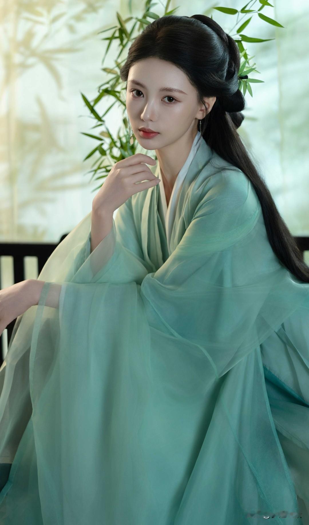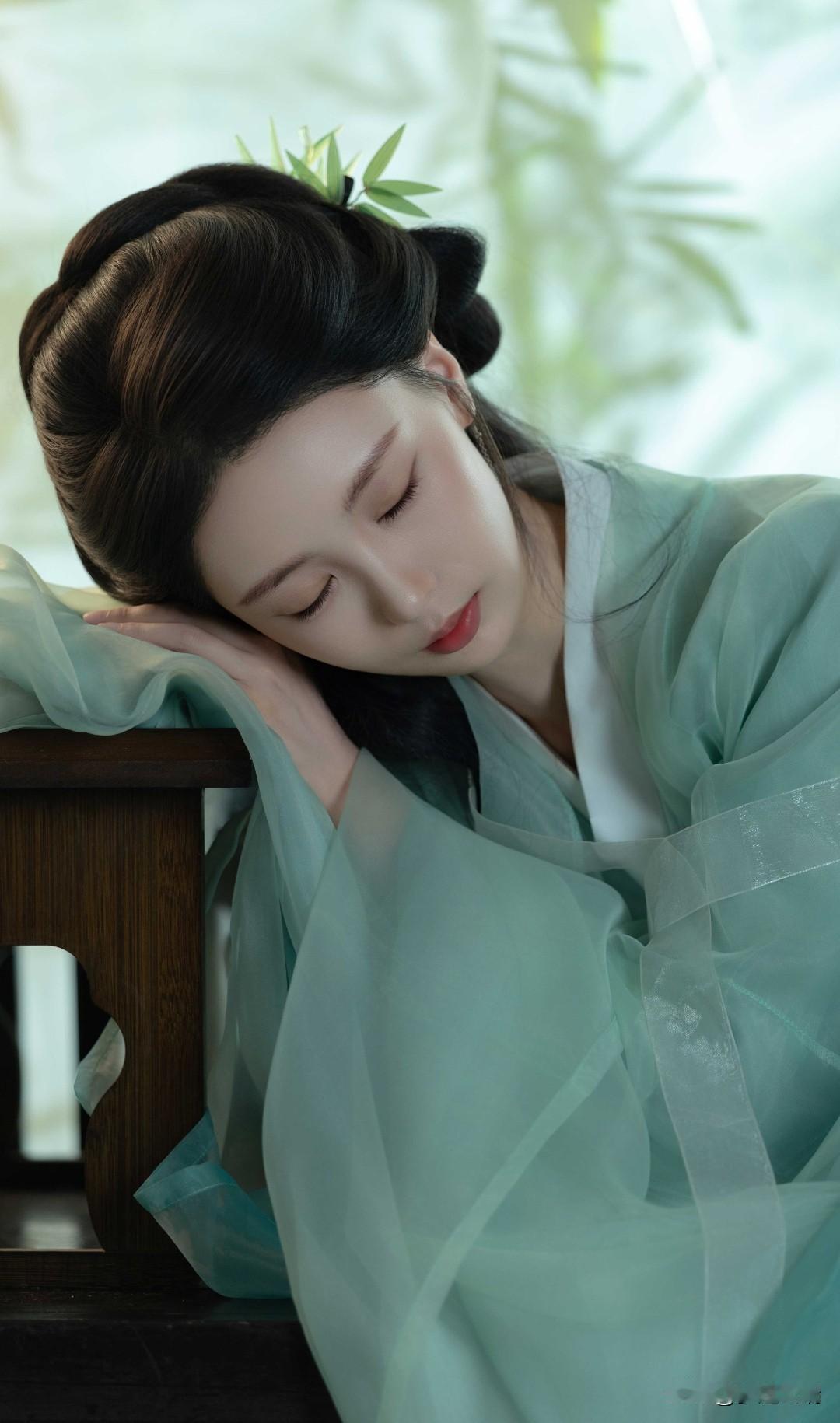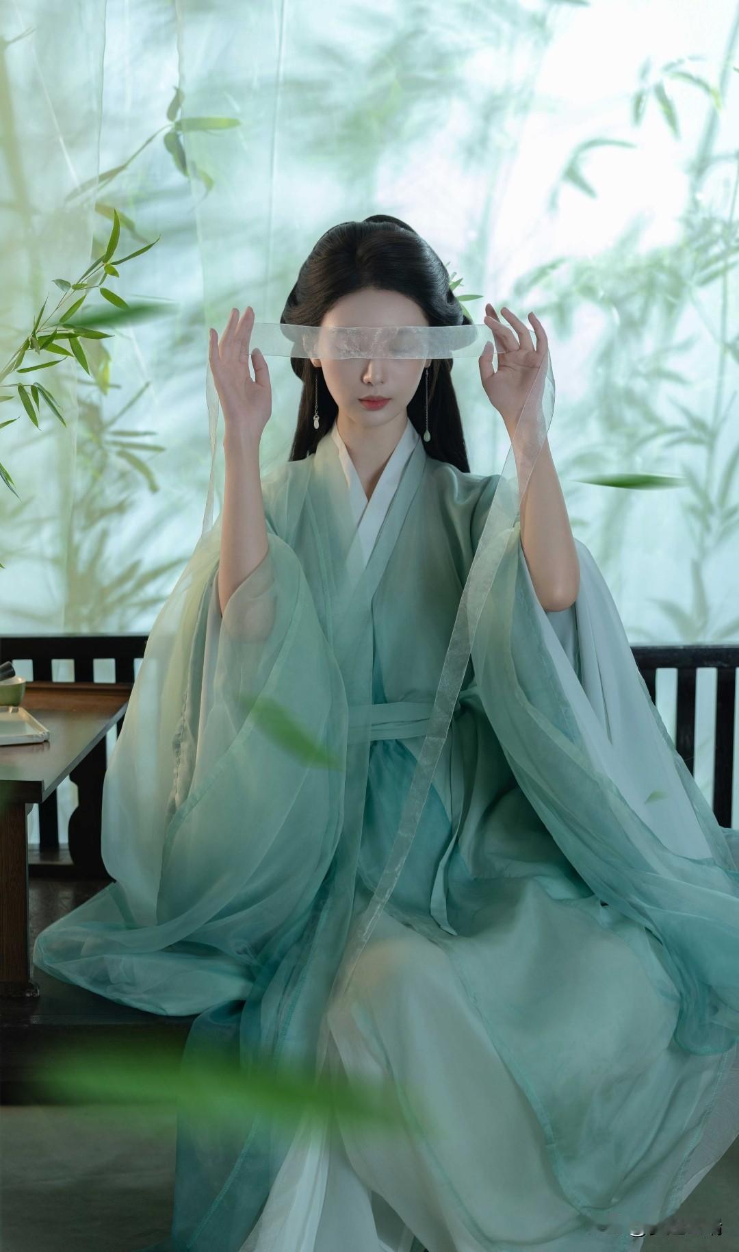 古典美人,绿衣飘飘,竹影婆娑,静谧如画。