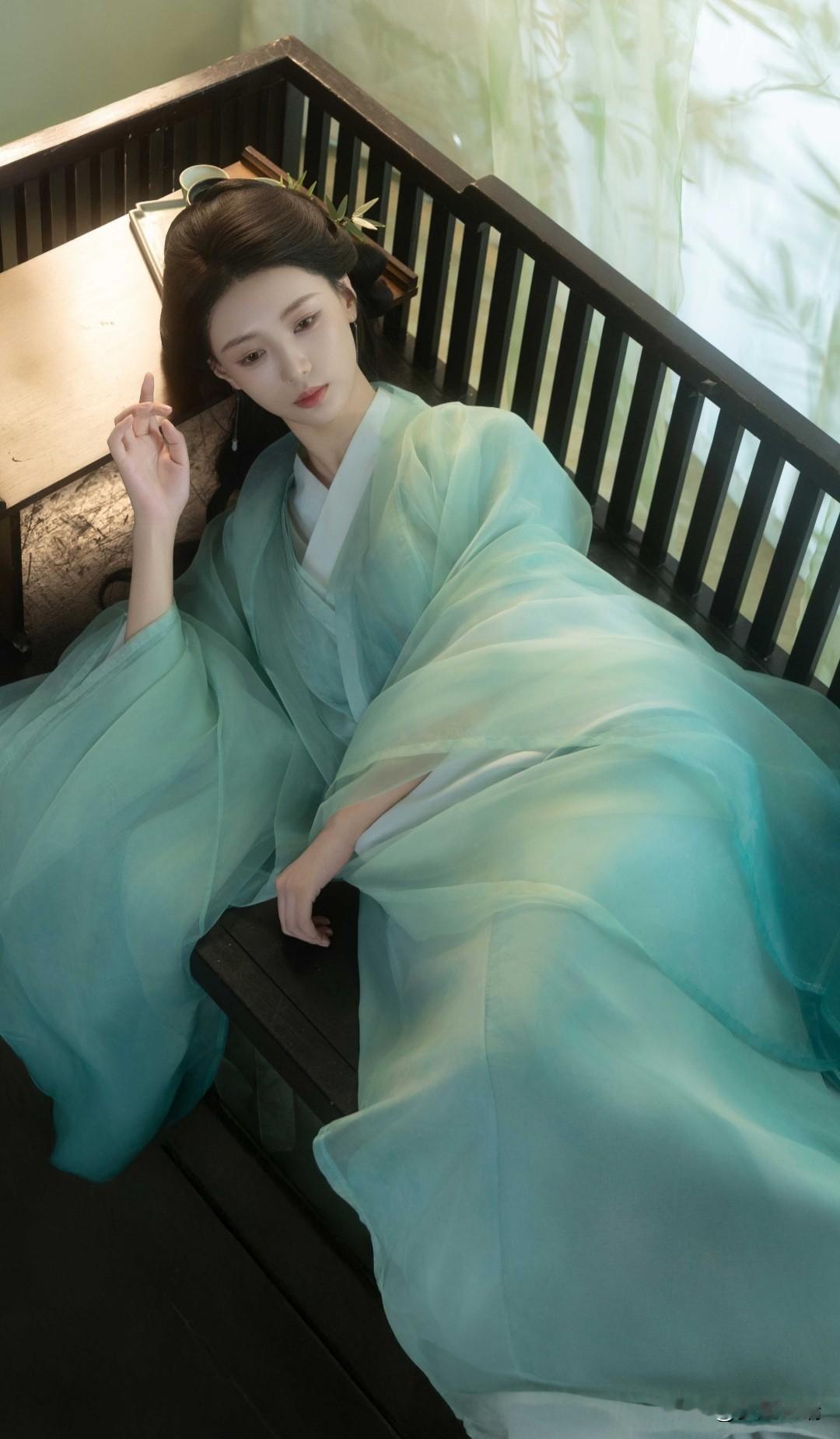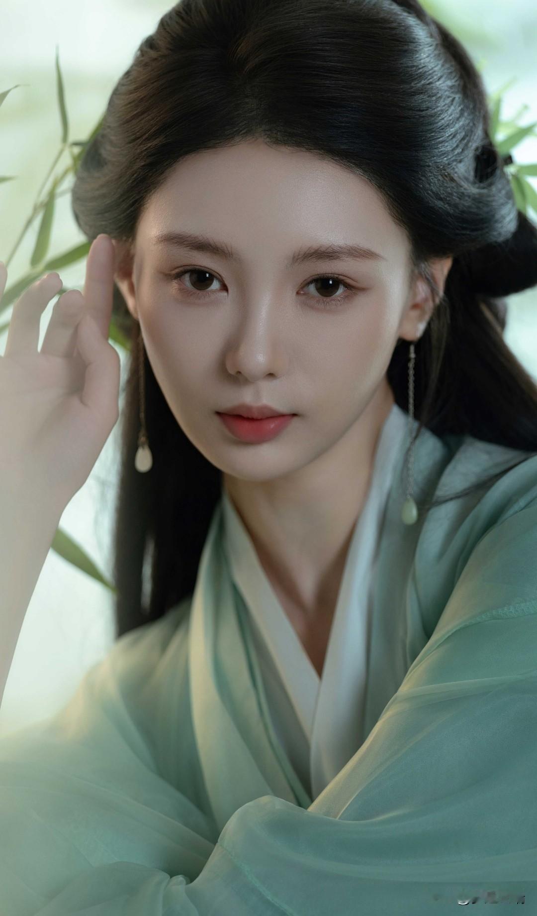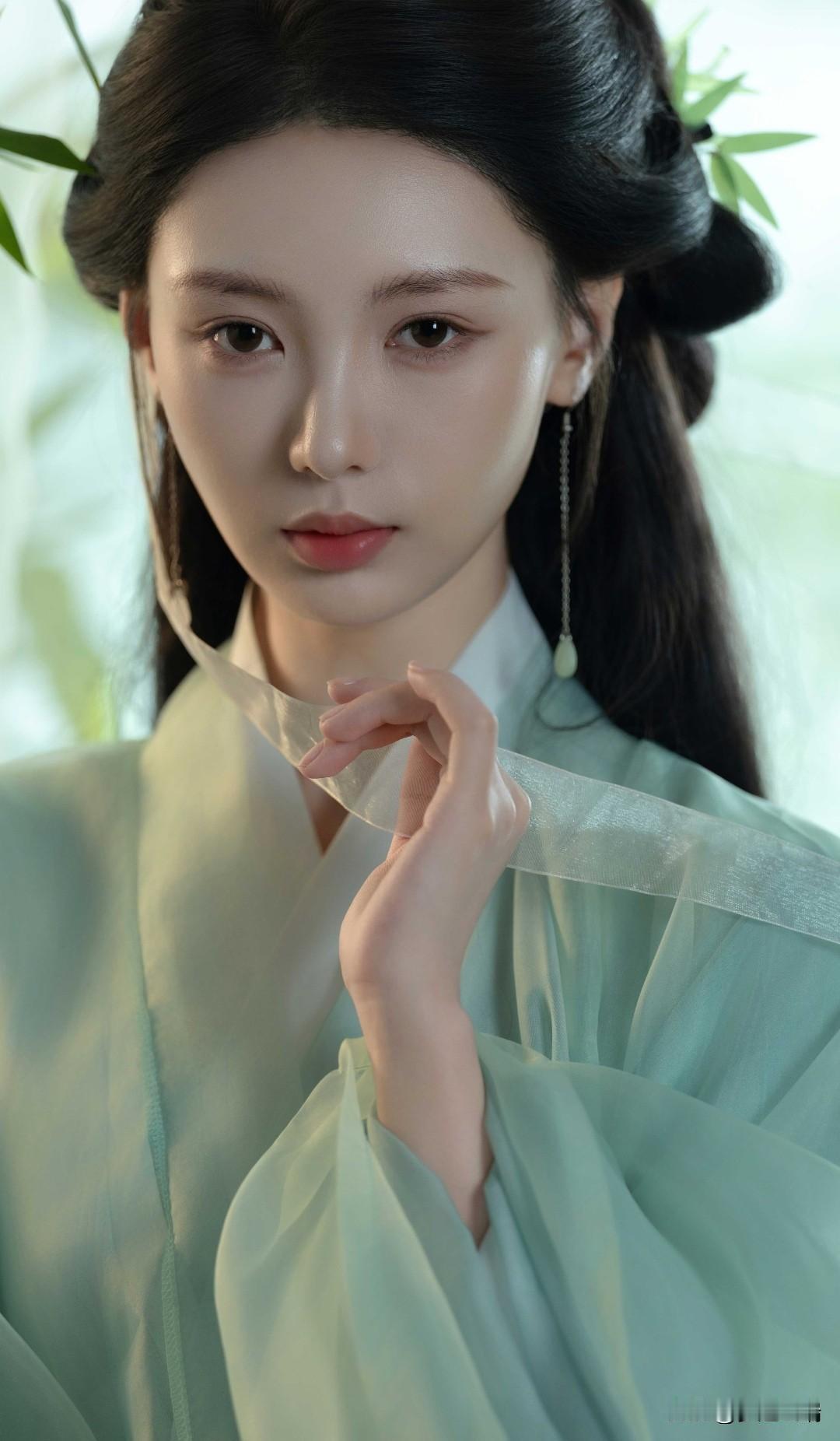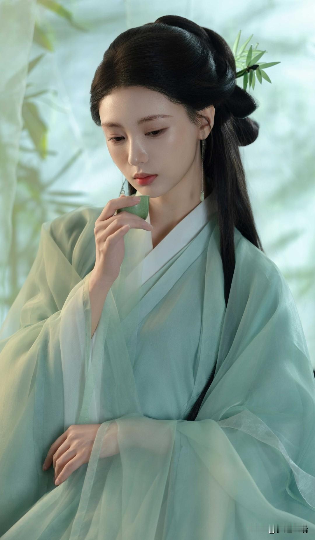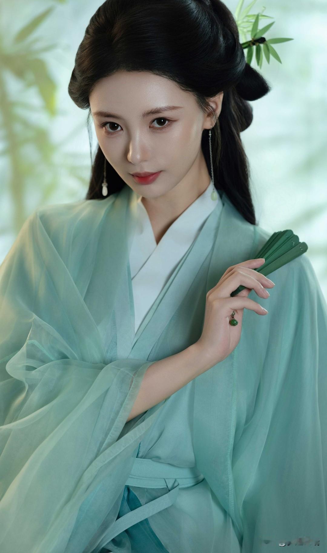 古典美人,绿衣飘飘,竹影婆娑,静谧如画。