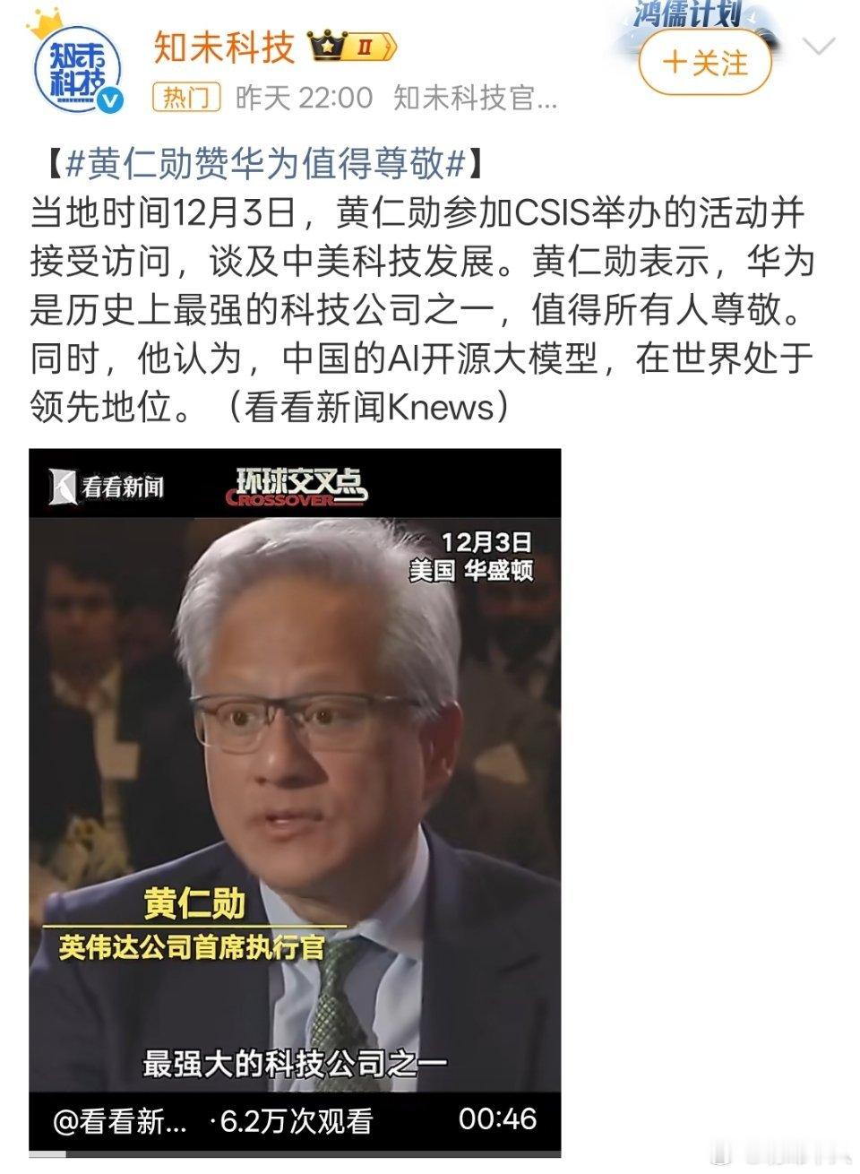 黄仁勋罕见失态!华为5G技术出口为何让芯片巨头坐立不安?"这根本不是一个级别 【16评论】【16点赞】 芯片 华为 5G 黄仁勋 互联网公司 it芯片 运营商动态 5g通信 微笑糯米 2025-12-05