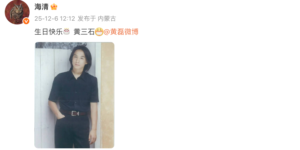 海清晒照给黄磊庆生海清叫黄磊黄三石 海清为黄磊庆生:生日快乐🎂 黄三石