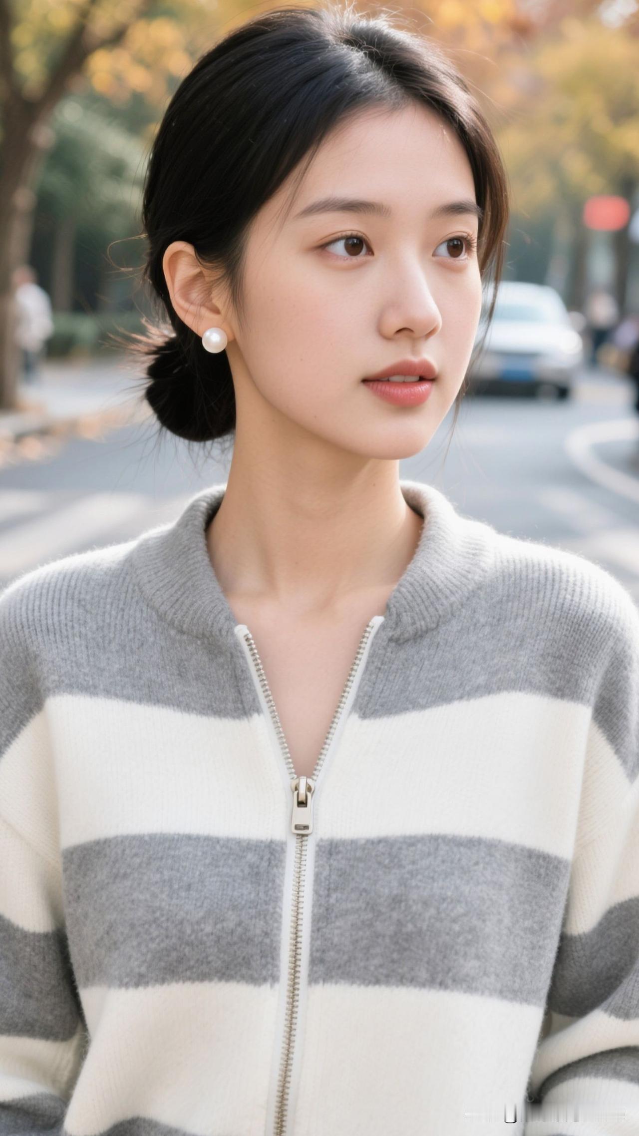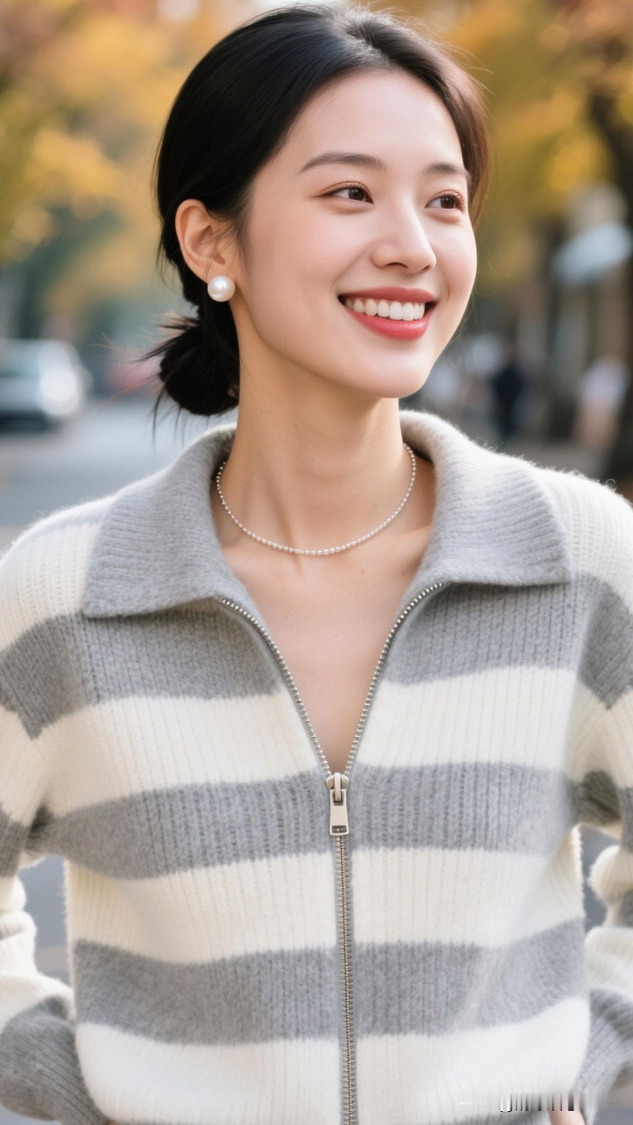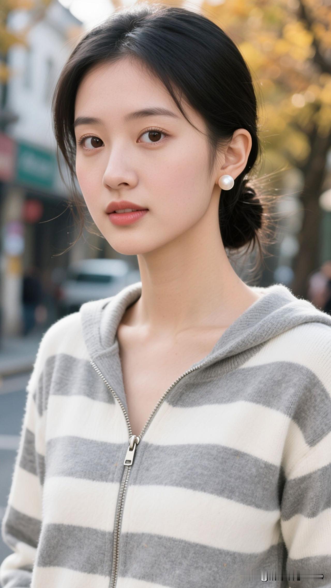暖调街景为幕,条纹衫是裁下的云,珍珠是凝住的星,她立在那里,就成了秋日浪漫的具象诗。温柔淡雅穿搭 城市一角的温柔 温柔雅致穿搭 山川自然系穿搭 温柔氛围感衬衫 温柔风景穿搭 自然文艺穿搭