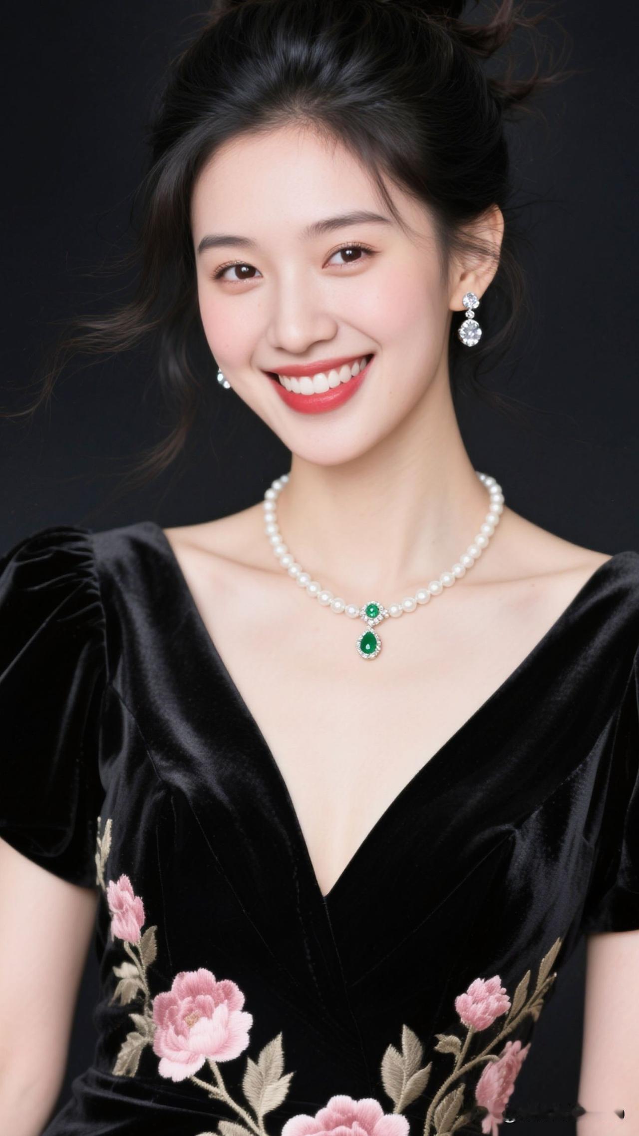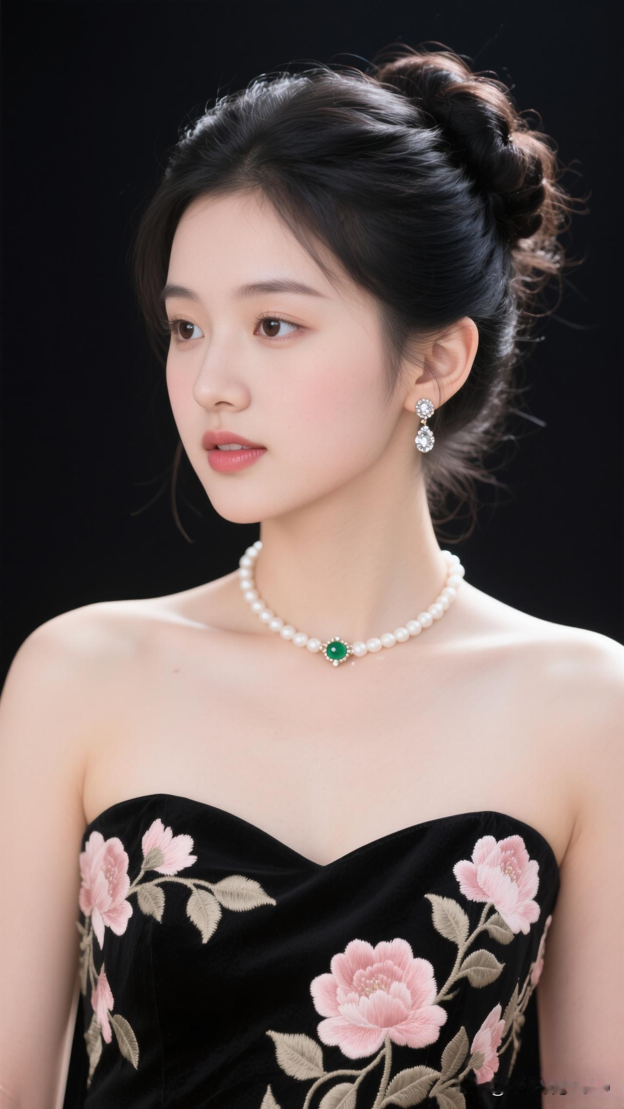 ✨ 墨色裙裾驮着古典的韵,珠链与绿石坠着时光的柔,当粉花与笑涡对映,整个优雅都淌满了襟袖。墨韵礼服 墨影印花裙 中式水墨裙装 粉裳古韵 水墨竹纹裙 绿裙雅韵 水墨风吊带裙