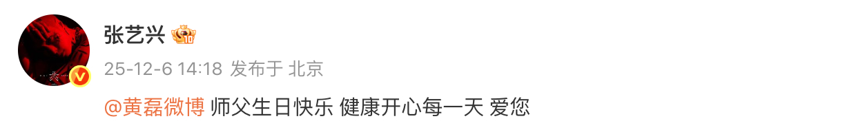 张艺兴给黄磊庆生:师父生日快乐 健康开心每一天 爱您