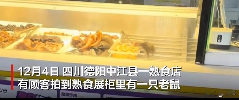 当你在超市熟食档口看到老鼠,你还会买里面的菜吗? 谁能想到买个卤味能撞见“活物”? 12月4日,四川德阳中江县某熟食店的展柜里,一只老鼠当着顾客的面爬进去啃食卤味——视频里能清楚看到它扒着卤猪尾啃,而展柜旁连个店员都没有,这一幕直接给顾客看懵了,当场拍下视频曝光。 第二天(12月5日),当地市场监管局就火速介入:餐饮监管股、城北所都去了现场,涉事店铺已经暂停营业,接下来还要全面消杀、查卫生隐患。 评论区直接炸了: “这展柜是没关严还是根本没防鼠?” “刚买了卤菜的我现在手里的鸭翅不香了” “希望查到底,食品卫生真的不能马虎!” 说真的,熟食店的展柜是直接接触入口食物的地方,连老鼠都能随便进,这卫生条件确实让人打寒颤。 咱普通消费者也只能盼着监管部门查得严点,也给其他店家提个醒:别等“老鼠上门”才想起防患! 冬日生活打卡季食品安全寻味四川