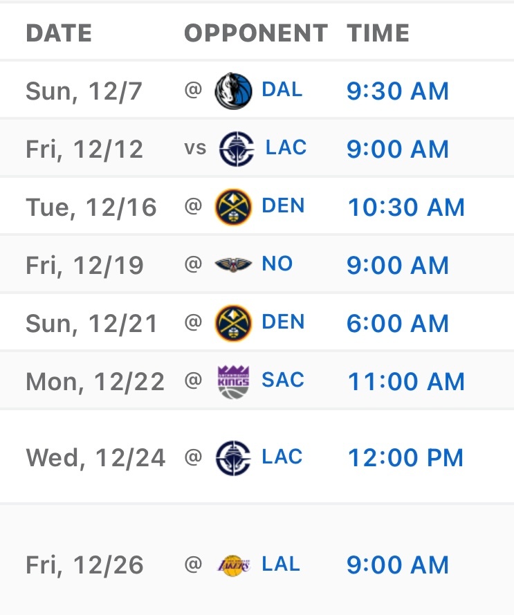 湖人在缺少东契奇的情况下,客场背靠背一胜一负,完全可以接受,西部前四的位置暂时还是比较稳固的。少赛两场的火箭之后将两次在客场与掘金直接对话,而湖人之后的赛程也是挑战重重。(图二 湖人后续赛程,图三 火箭后续赛程,图四,掘金后续赛程)