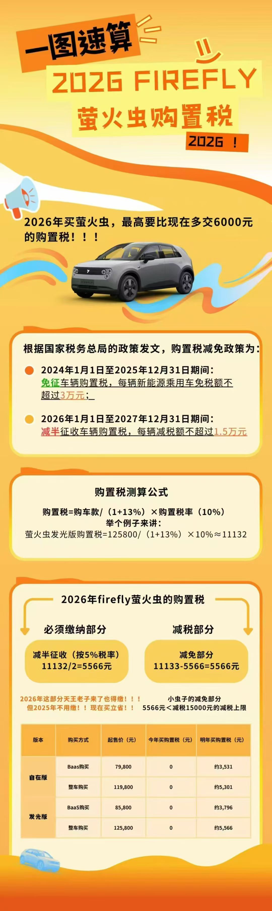 号外,明年买萤火虫,也要交购置税了哈。Firefly萤火虫