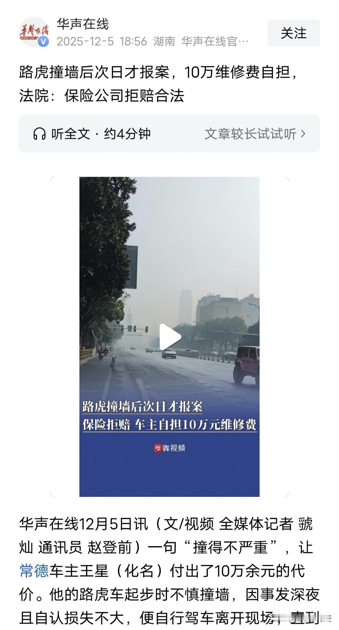 湖南常德,深夜,男子把路虎车交给朋友开,结果车刚起步就撞到墙上,二人下车一看,觉得不严重,次日才报警、报险,车辆定损维修费高达10万,不过,事故证明载明:因延时报案,没办法证明驾驶人当时的状态。男子找保险公司理赔,却遭到拒绝,理由是:男子没有及时通知,事故原因难以确定。男子一怒之下告上法院,要求保险公司支付这10万余元维修费,可法院判决令男子始料未及。 2024年10月的一个深夜,王星(化名)把自己心爱的路虎车交给朋友开,自己悠然自得的坐在车上,准备回家。 可就在这时,意外猝不及防的发生了。 朋友开着车刚起步,猛的撞到路边的墙上,发出一声沉闷的巨响…… 王星被吓了一跳,他和朋友赶紧下车查看,借着微弱的光线,二人看到车撞墙上了,有些损坏,两人都感叹:“还好,还好,问题不大!” 因为是深夜,四周一片寂静,王星和朋友觉得撞的不严重,也是太晚了,两人也不想折腾,就没有在第一时间报警,也没有联系保险公司。 朋友有些愧疚,自己没开好,给车撞了,毕竟车挺贵,这要是维修也得不少钱呢? 王星却一点不担心,他心想反正有保险,撞的也不严重,等第二天再处理这事也来得及,先回家睡觉要紧。 于是,二人开着车一起离开了。 一直到了第二天上午,王星开着车回到了头一天撞墙的位置,试图“复原”当时的情况。然后,报警并通知了保险公司。 然而,王星他们没想到,这次的“拖延”已经给他们带来了很大的麻烦。 交警部门在接到报案后,迅速展开了调查。但是由于王星拖到第二天才报案,现场很多关键信息已经无法获取,也无法证明开车的人当时是处在一个什么样的状态? 因此,只能出具事故证明,载明:“因延时报案,无法证明驾驶人当时状态”。 与此同时,王星的车辆经过定损,维修费竟然高达10万余元,这个数字远远超出了王星和驾驶人当时的预估,他们最初以为没那么严重。 不过,王星依然抱着一丝希望,满怀期待的向保险公司申请理赔时,万万没想到,却遭到了拒绝。 保险公司给出的理由很明确,是你王星在车撞上墙的时候,没有在第一时间通知保险公司,那么,车是在什么情况下撞的,是什么原因?开车的人当时有没有喝酒还是有什么别的情况?这些原因都难以确定。 被拒绝后,王星还不死心,他试图和保险公司协商,但是,双方始终无法达成一致意见。 王星越想越来气,不就是晚一点才报险吗?凭什么不赔啊?随后,他一纸诉状将保险公司告上法院,要求对方支付这10万余元维修费。 王星这件事就坑在他“拖延”,在车撞墙上的时候,如果他马上报警也许就没事了,可他觉得撞的不严重,就不着急报警、也没有第一时间联系保险公司。 然后,他第二天上午才报案,这一晚上的“空白”时间,他没有办法解释清楚了,而且,车出了事故没有第一时间报警,也就没办法明确的认定事故的责任。 所以,保险公司就抓住了王星的把柄,认为他“未及时通知导致事故性质、原因难以确定”。 有人问,他要是不说是头一天晚上撞的,把车开到现场,然后再报警有谁能知道呢? 这就把问题想简单了,遇到这种情况,千万不要耍小聪明,尤其是这种大事故,千把块的事故、小事故没问题,这种大事故,保险公司一定会查,一查发现你有所隐瞒,那可不就是拒赔的问题了。 此事中,王星和朋友看一眼,觉得撞的不严重,可是,他们的判断标准并不是法律赋予的,而且,车辆定损维修费需要10万多?到底撞的严不严重?实情只有司机清楚吧。 法院查明:王星的保单上有一“免责事项说明书”中已经写的明明白白:“因重大过失未及时通知导致事故原因、损失难以确定的,保险人不负责赔偿”。 这一条的字体被加黑、加粗做了明显标识,而且,王星也在上面签字了,也确认他知道了这条内容。 《保险法》第21条规定:投保人、被保险人或者受益人知道保险事故发生后,应当及时通知保险人。故意或者因重大过失未及时通知,致使保险事故的性质、原因、损失程度等难以确定的,保险人对无法确定的部分,不承担赔偿或者给付保险金的责任。 本案中,王星在事故发生后没有在第一时间报警或联系保险公司,而是擅自离开现场。 导致交警无法核实驾驶人状态,比如是否存在酒驾,或者疲劳驾驶等情况。 而保险公司也无法通过现场勘查确定事故原因。 王星作为被保险人不能以“个人认为损失小”为由免除及时通知义务。 法院认定,保险公司的拒赔行为符合法律规定。 最终,法院判决:驳回王星全部诉求。 王星没有及时报案,最终,车辆那10万余元的维修费得由他自己承担了,这次教训可谓代价惨痛。 也提醒大家,遇到这种情况,一定要第一时间报案,切勿拖延! 关注@福康说法 从日常点滴学法律,生活安稳更有底 图片来源于网络