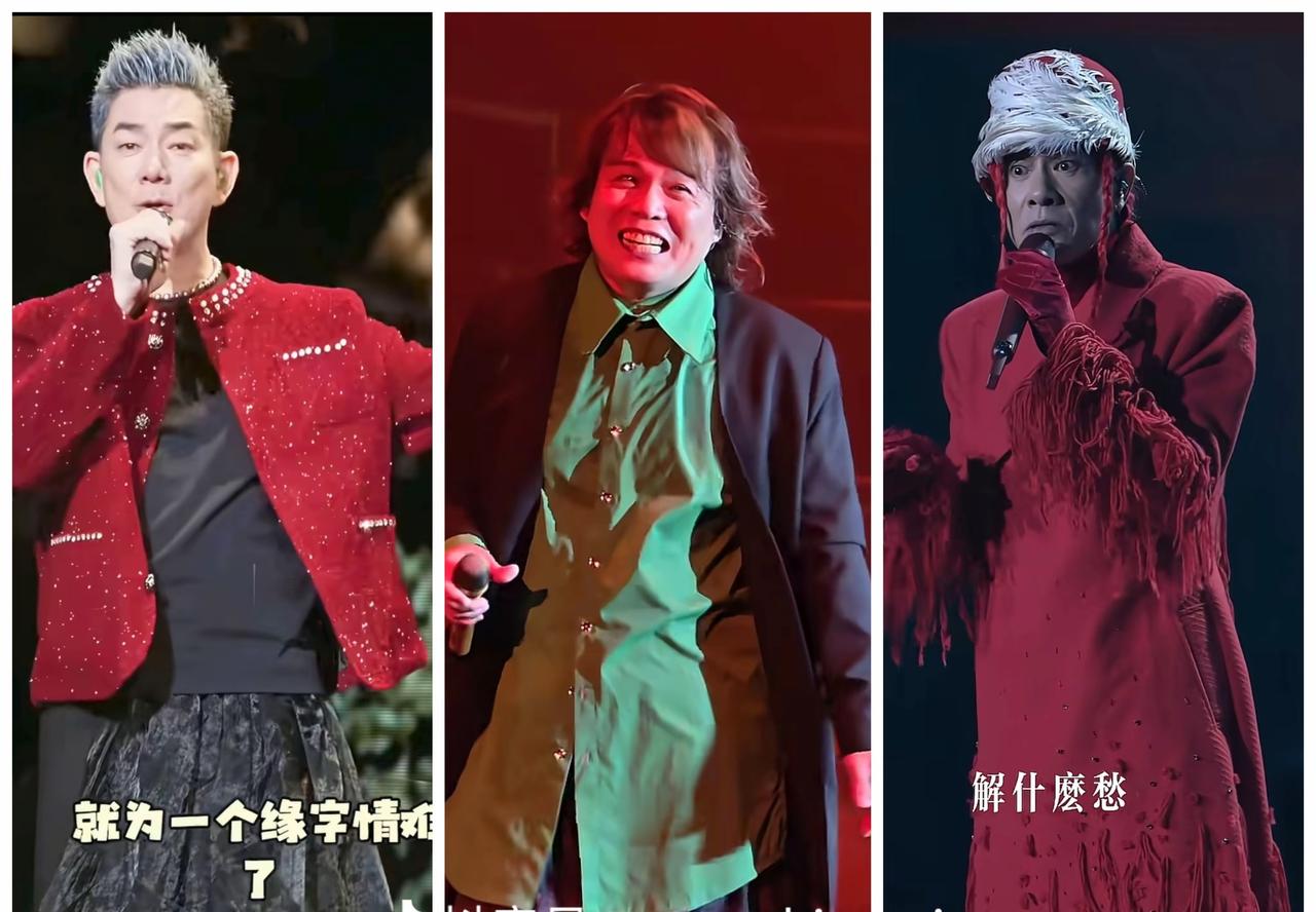 老一辈男明星,演唱会的服装标配,打扮的花红柳绿,全占齐了,一样不少。