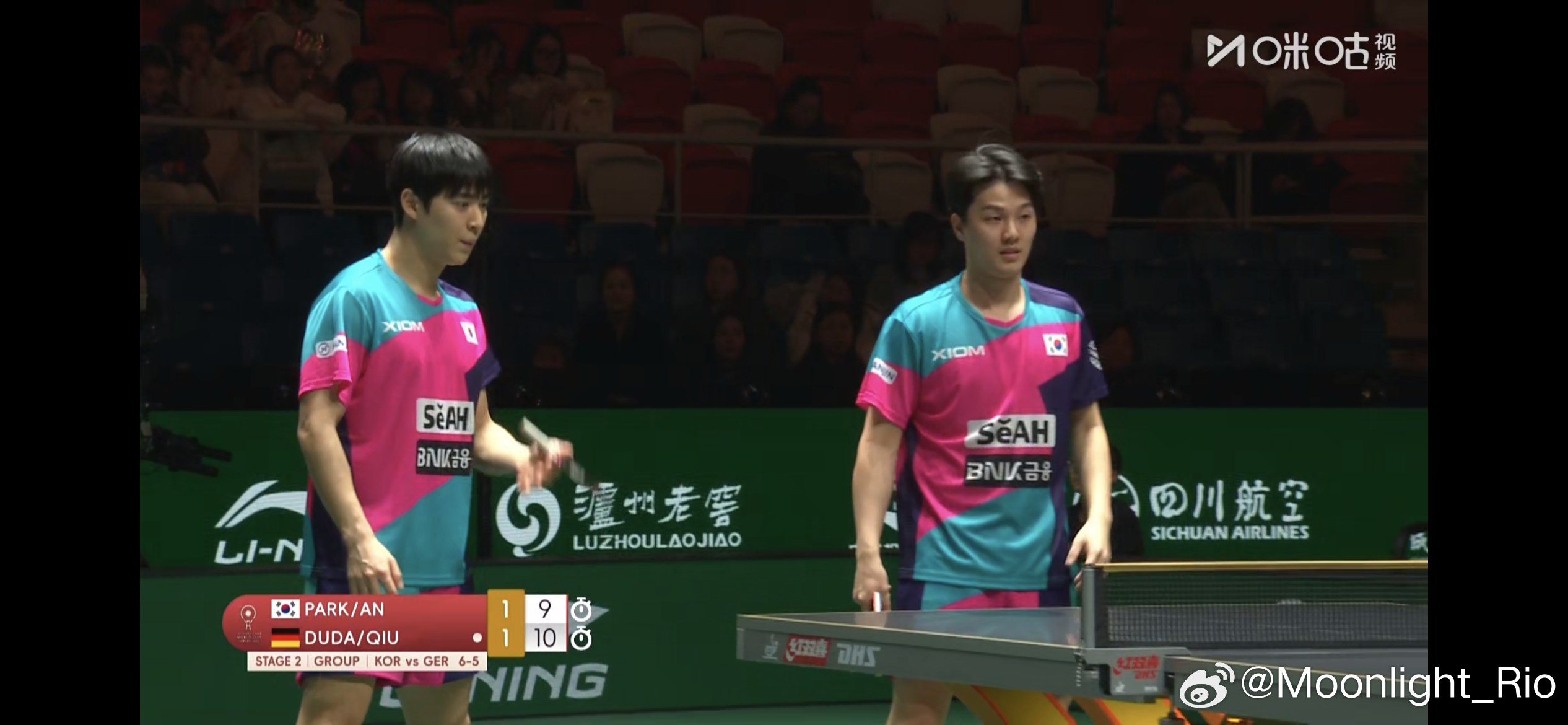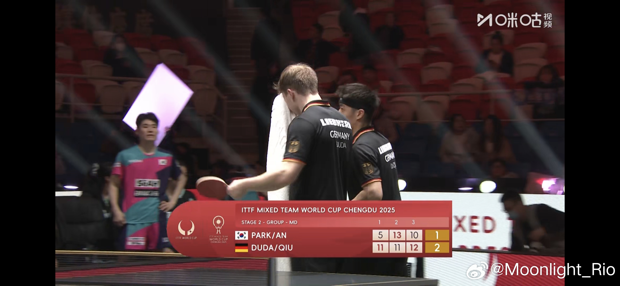 2025成都混合团体世界杯 第二阶段🇰🇷韩国6-6德国🇩🇪安宰贤/朴康贤1比2邱党/杜达(5:11,13:11,10:12)
