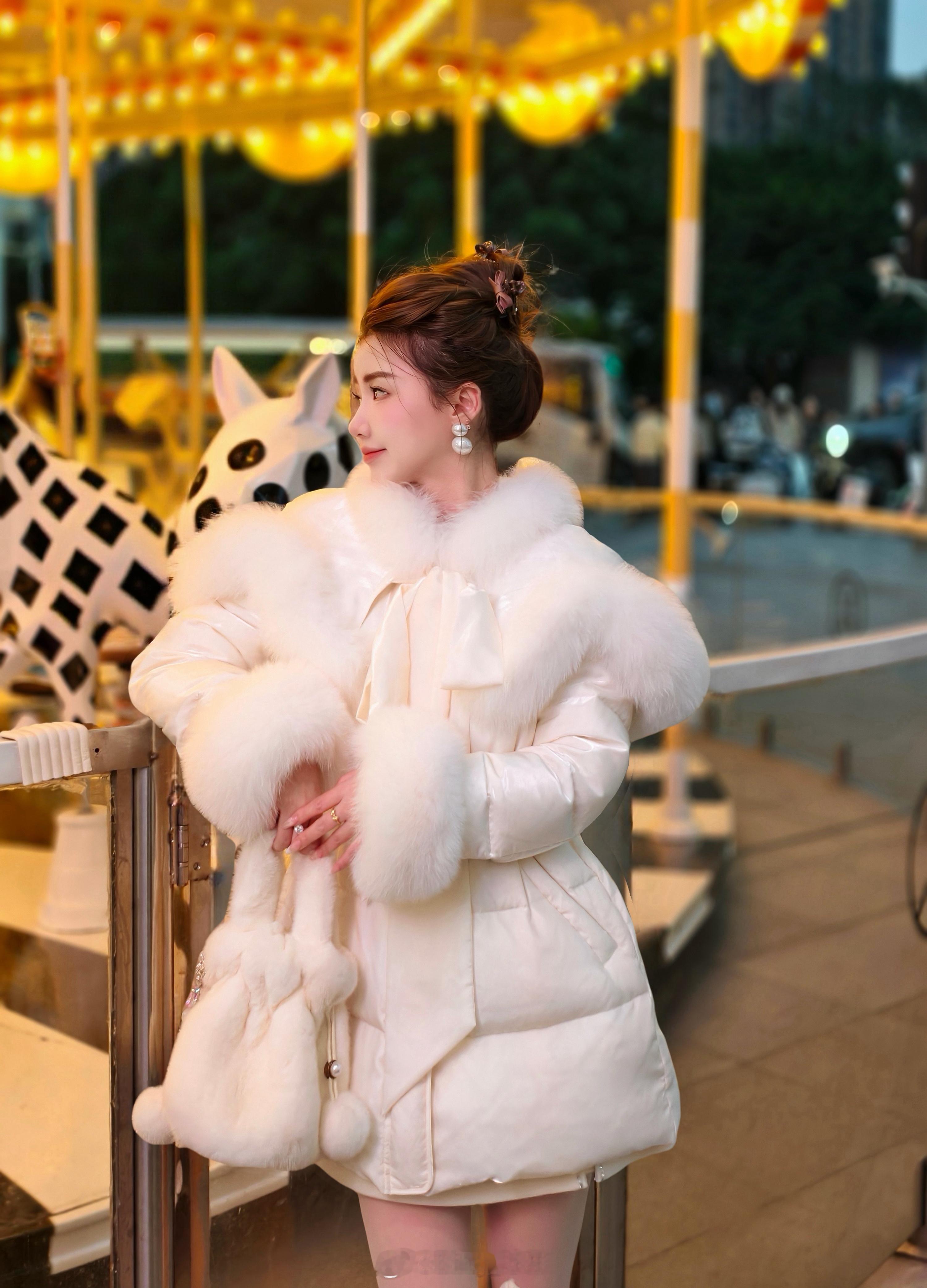 正在开这款↓草莓布丁羽绒外套 and 羽绒马甲都配有腰带哦,显腰身显腿长两种穿法