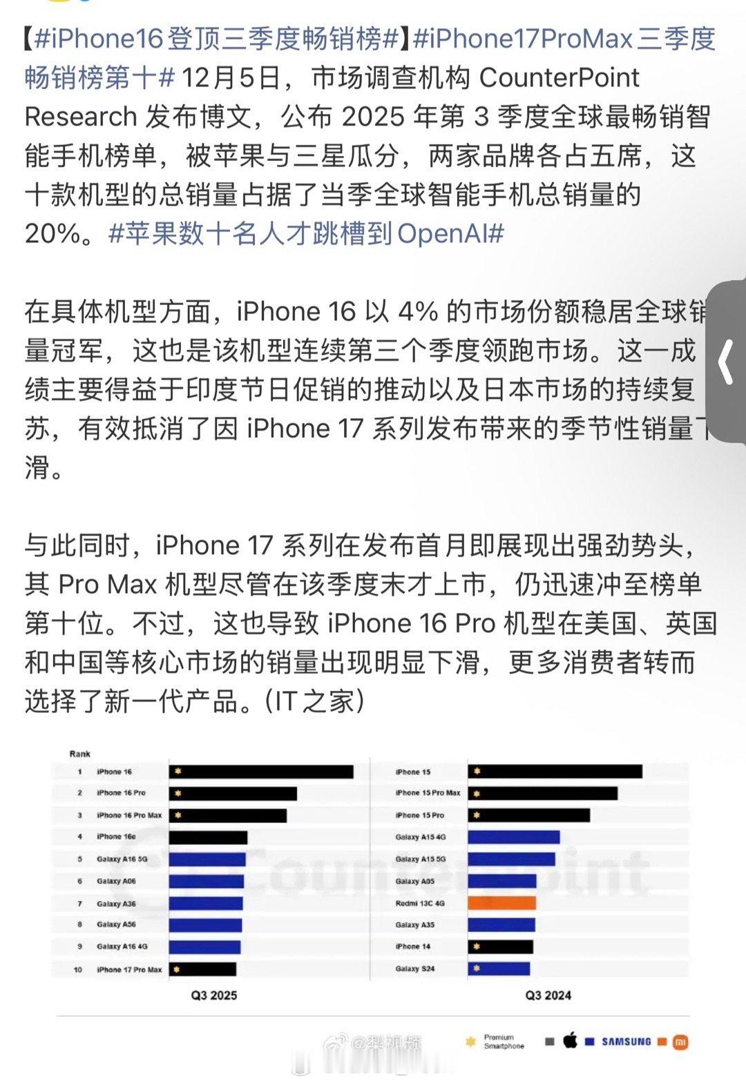 iPhone16登顶三季度畅销榜好家伙iPhone16直接比iPhone17买得更好了是吧可是…不应该吧…17的配置明显是好了很多呀…不过就是外观不变而已看来换个外观也会买爆的吧