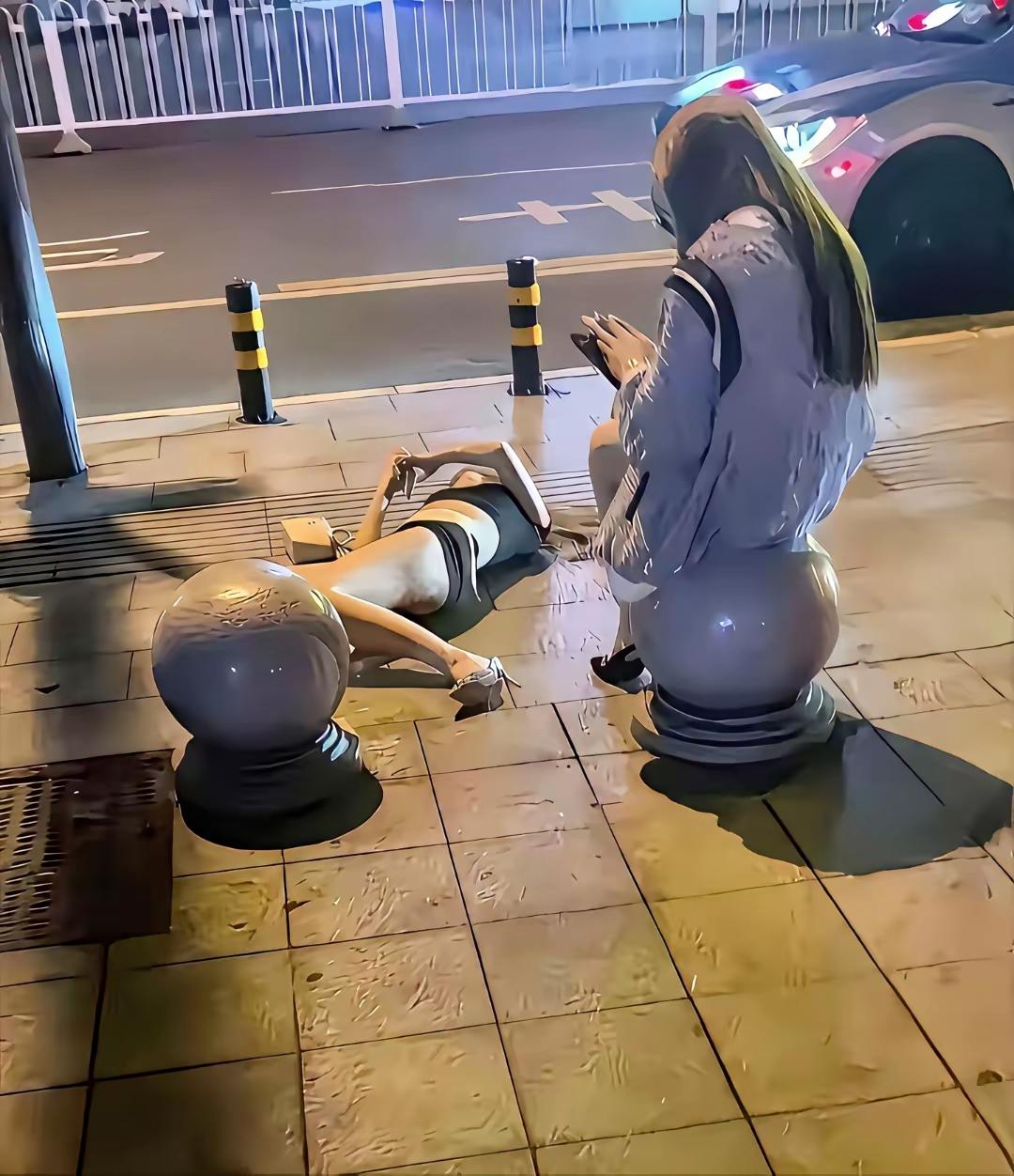 酒喝多瘫在街头的少女 喝多的那个直接瘫在马路上,毫无形象可言 清醒的坐在石墩上玩手机抽烟,顺便照看一下同伴。 她俩染发,奇装异服,让人感觉很叛逆。 这可能就是她们追求的自由和个性,酒随便喝,马路随便睡。 在她们眼里,理想,未来,都不如酒精的刺激。 白天睡觉,晚上夜场,夜夜笙歌。 玩够了,能找到一个好人就嫁了吗?